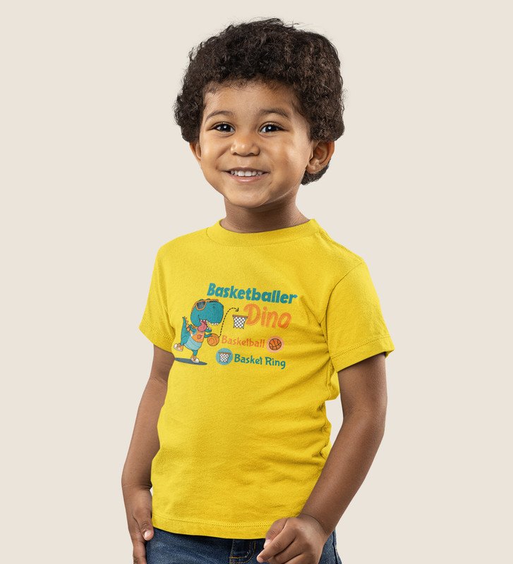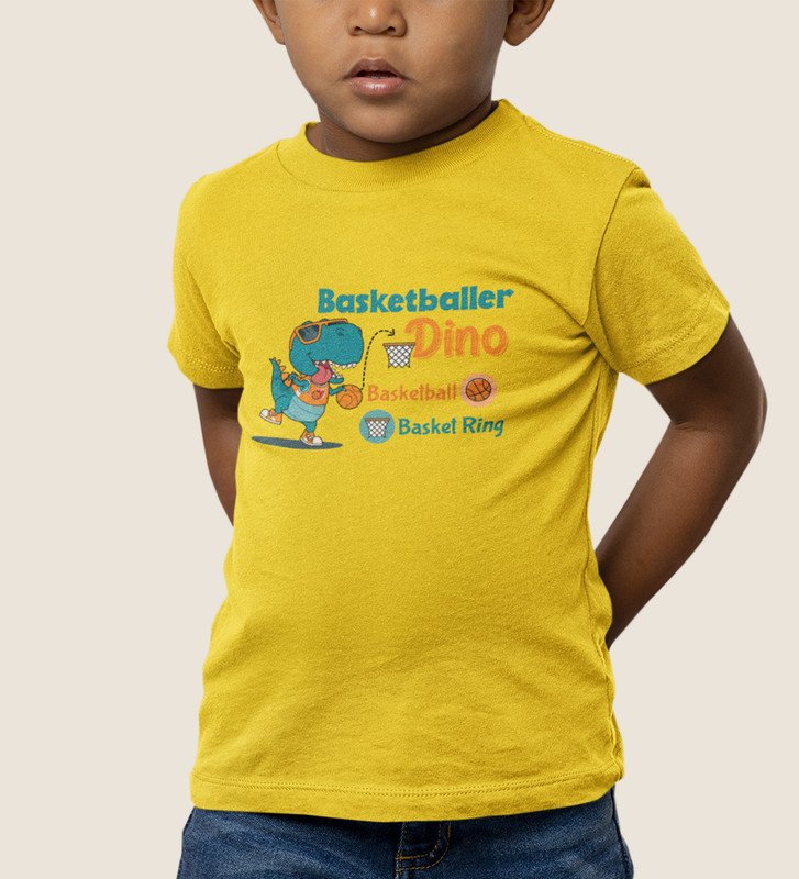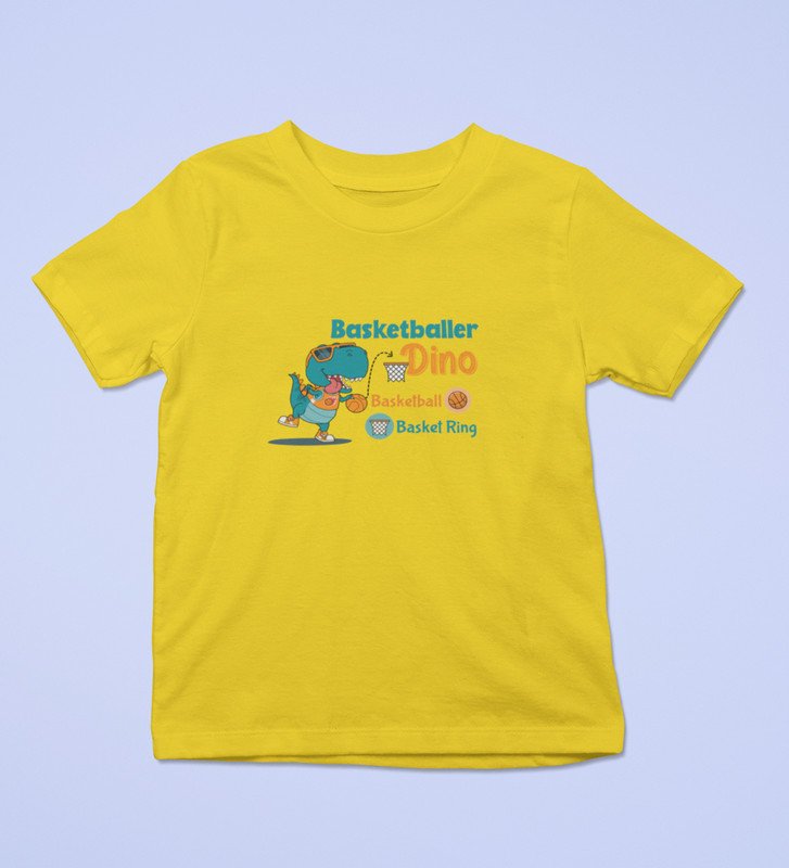 Basketballer Dino, Printed Cotton Tshirt for Boys