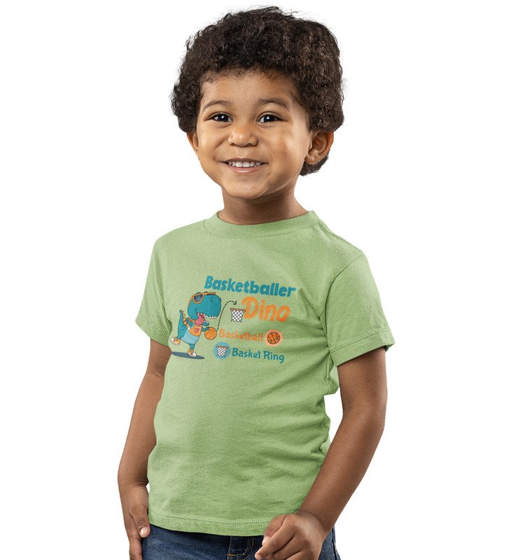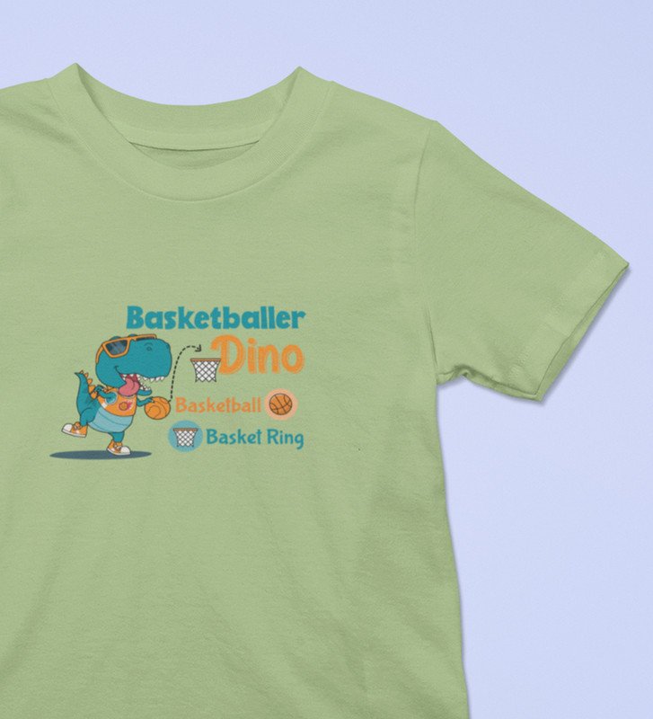 Basketballer Dino, Printed Cotton Tshirt for Boys