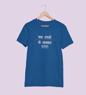 Be Aware: Printed (Blue) T-Shirt For Singles