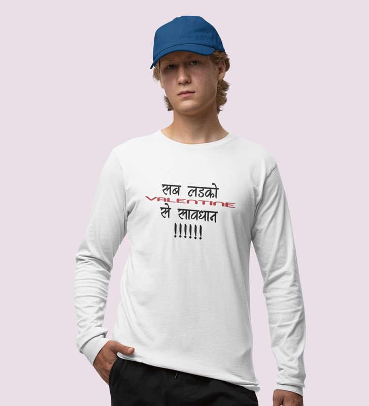 Be Aware: Printed (white) Full Sleeve T-Shirt For Singles