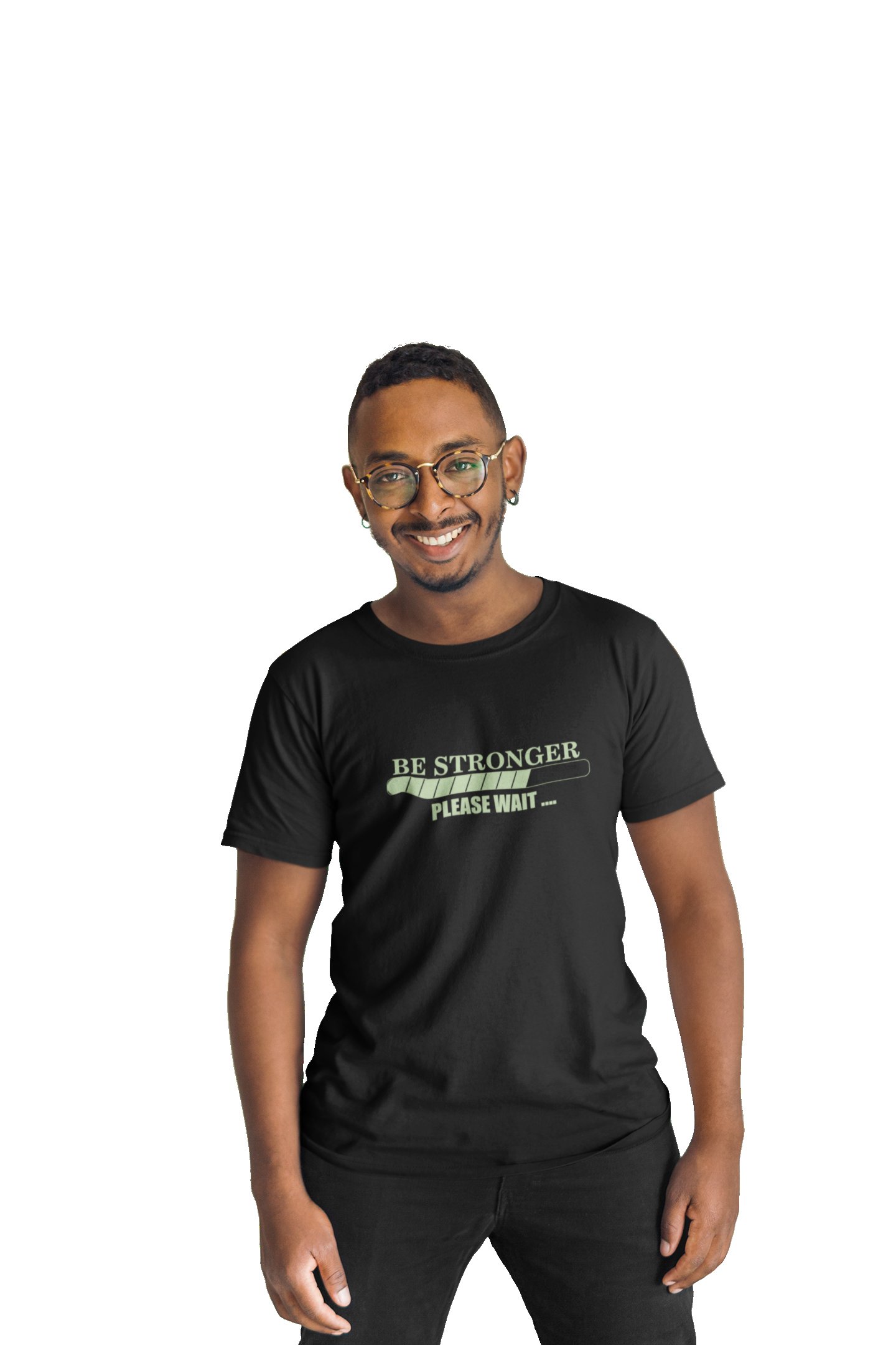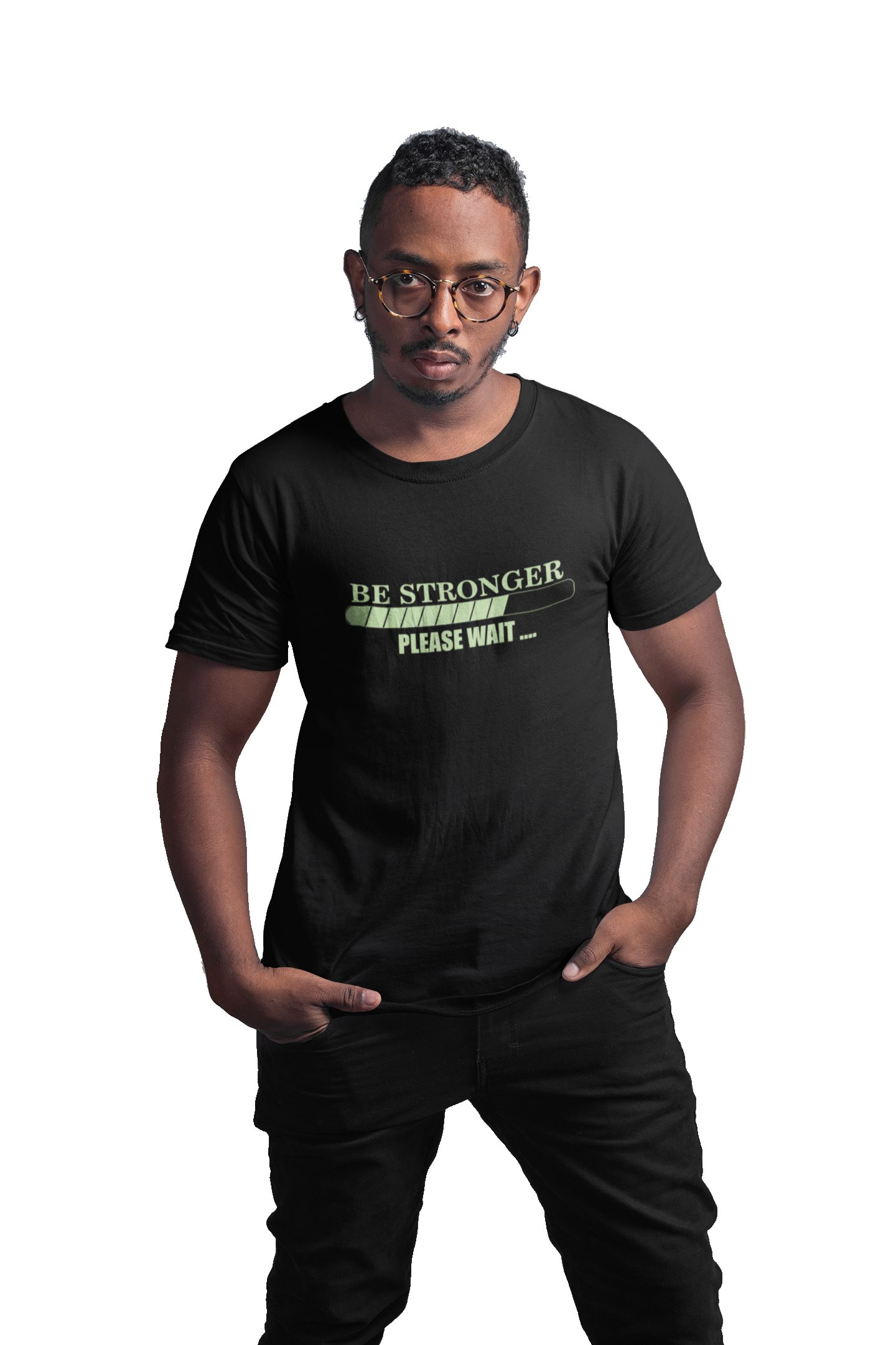 Be Stronger, Please Wait, (BG Green), Round Neck Gym Tshirt (Black Tshirt) - Clothes for Gym Lovers - Suitable for Gym Going Person - Foremost Gifting Material for Your Friends and Close Ones
