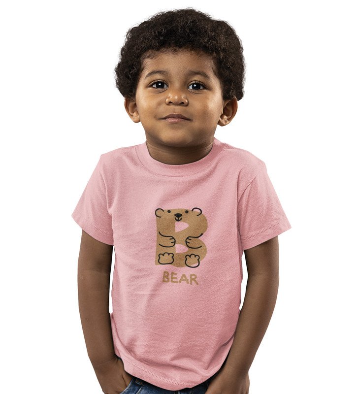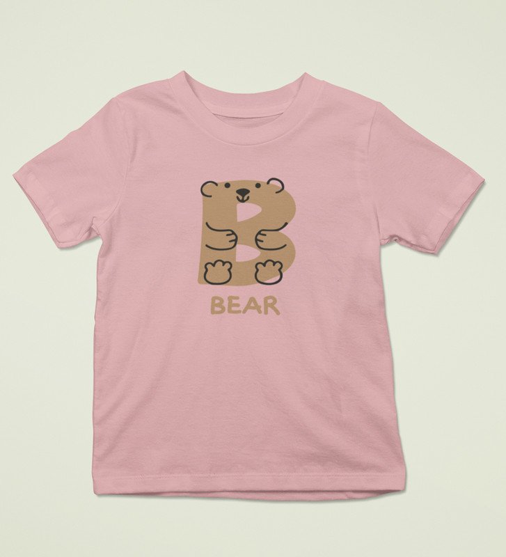 Beary bear, Printed Cotton Tshirt (Baby pink) for Boys