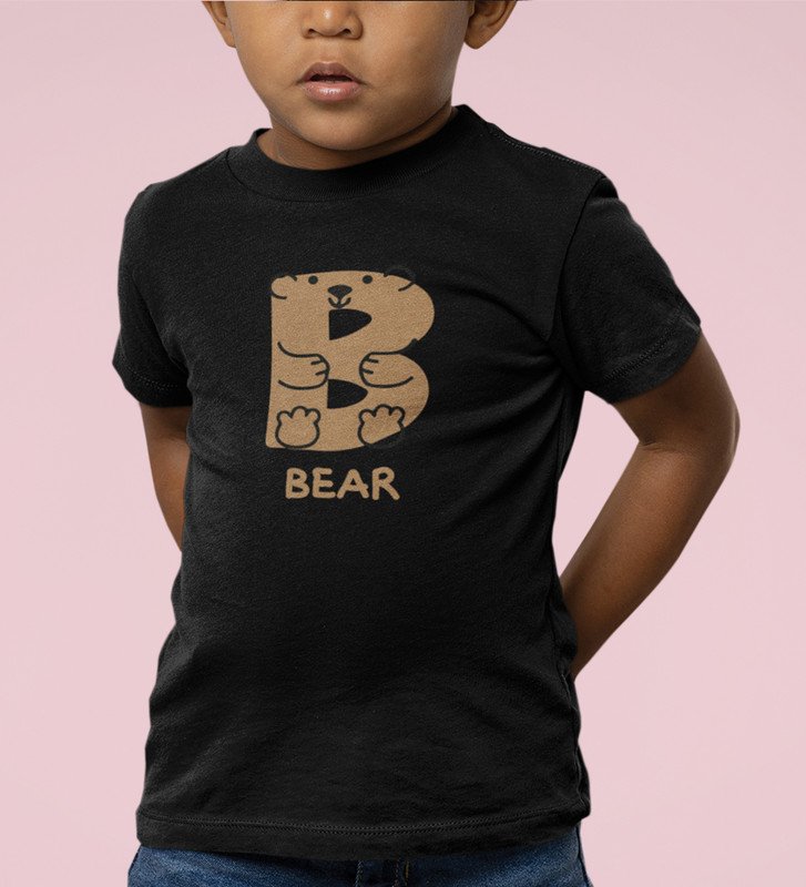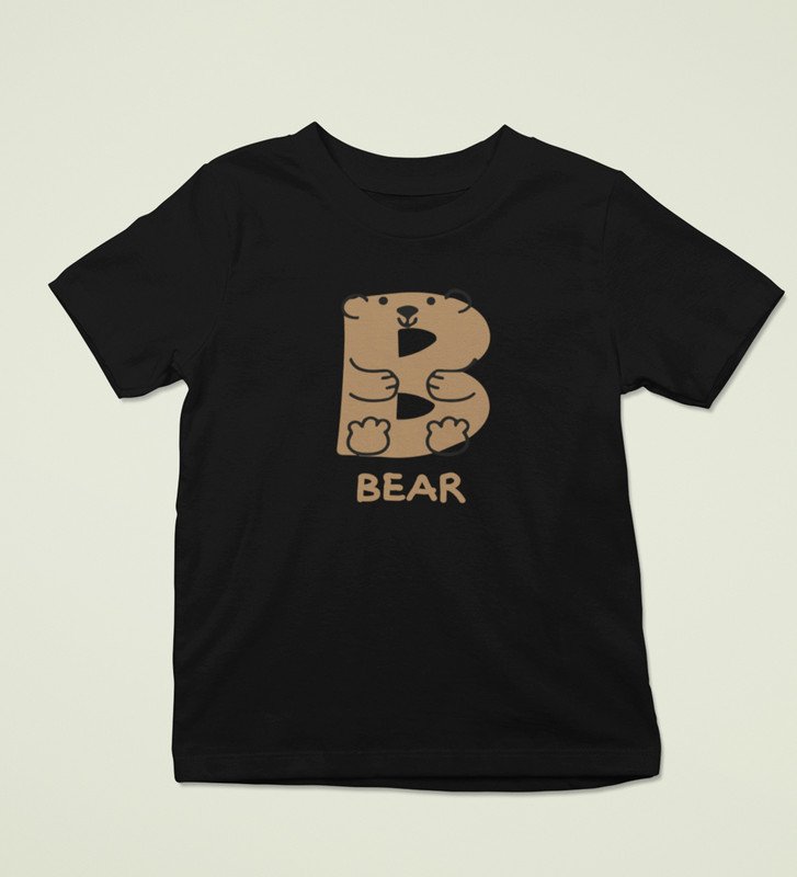 Beary bear, Printed Cotton Tshirt (Black) for Boys