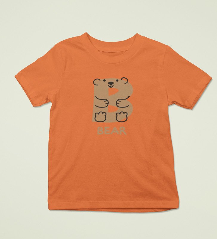 Beary bear, Printed Cotton Tshirt (orange) for Boys