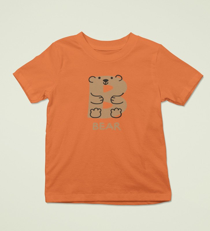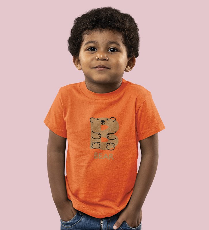 Beary bear, Printed Cotton Tshirt (Orange) for Boys