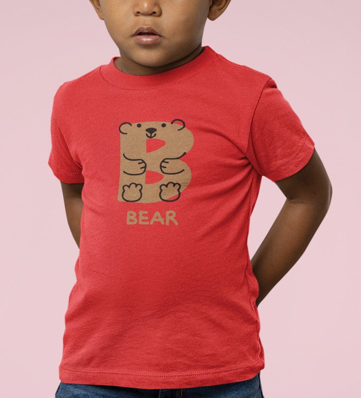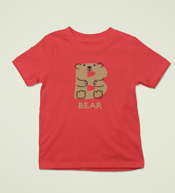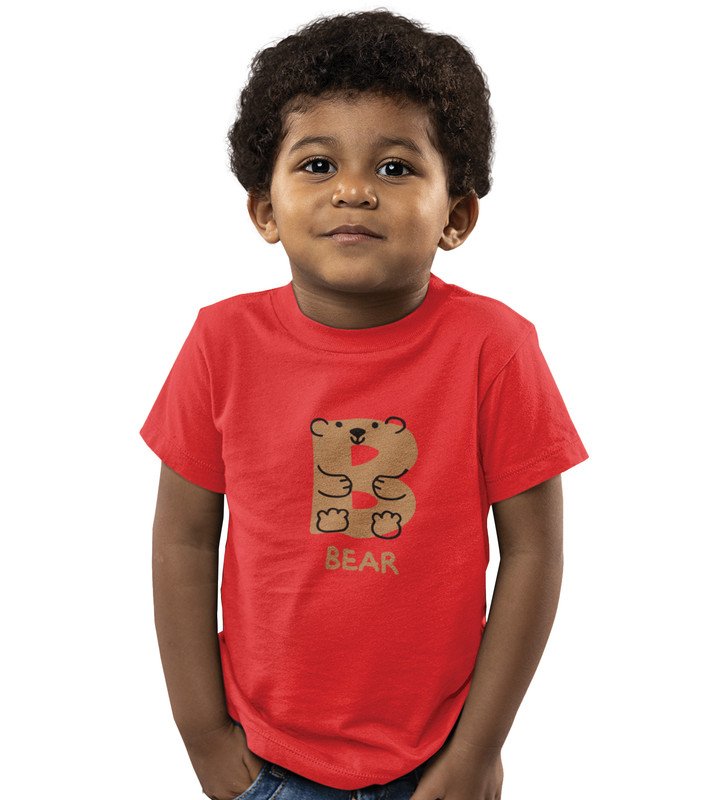 Beary bear, Printed Cotton Tshirt (Red) for Boys
