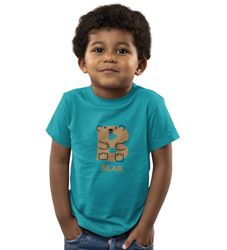 Beary bear, Printed Cotton Tshirt (Teal) for Boys