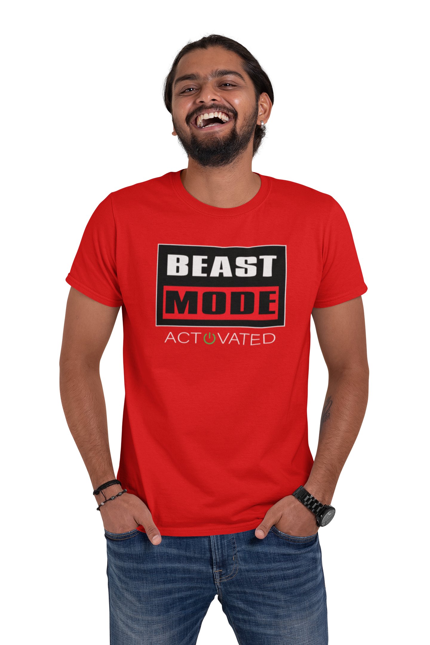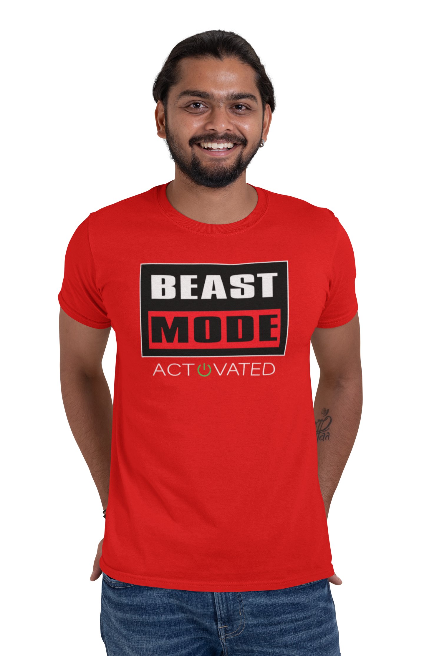 Beast Mode Activated, (BG Orange, White and Black), Round Neck Gym Tshirt (Red Tshirt) - Clothes for Gym Lovers - Foremost Gifting Material for Your Friends and Close Ones