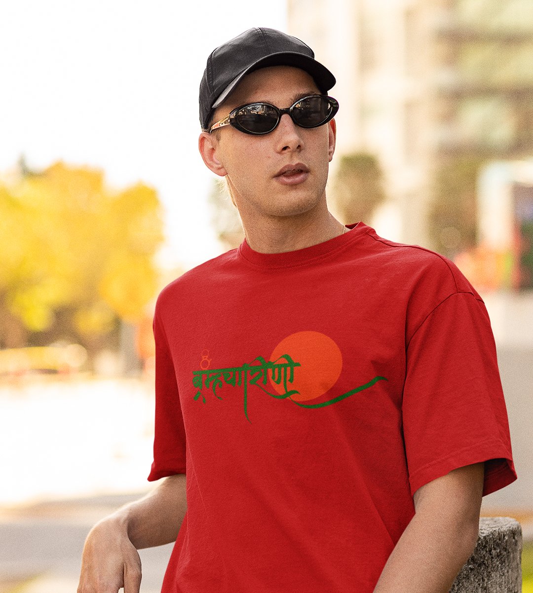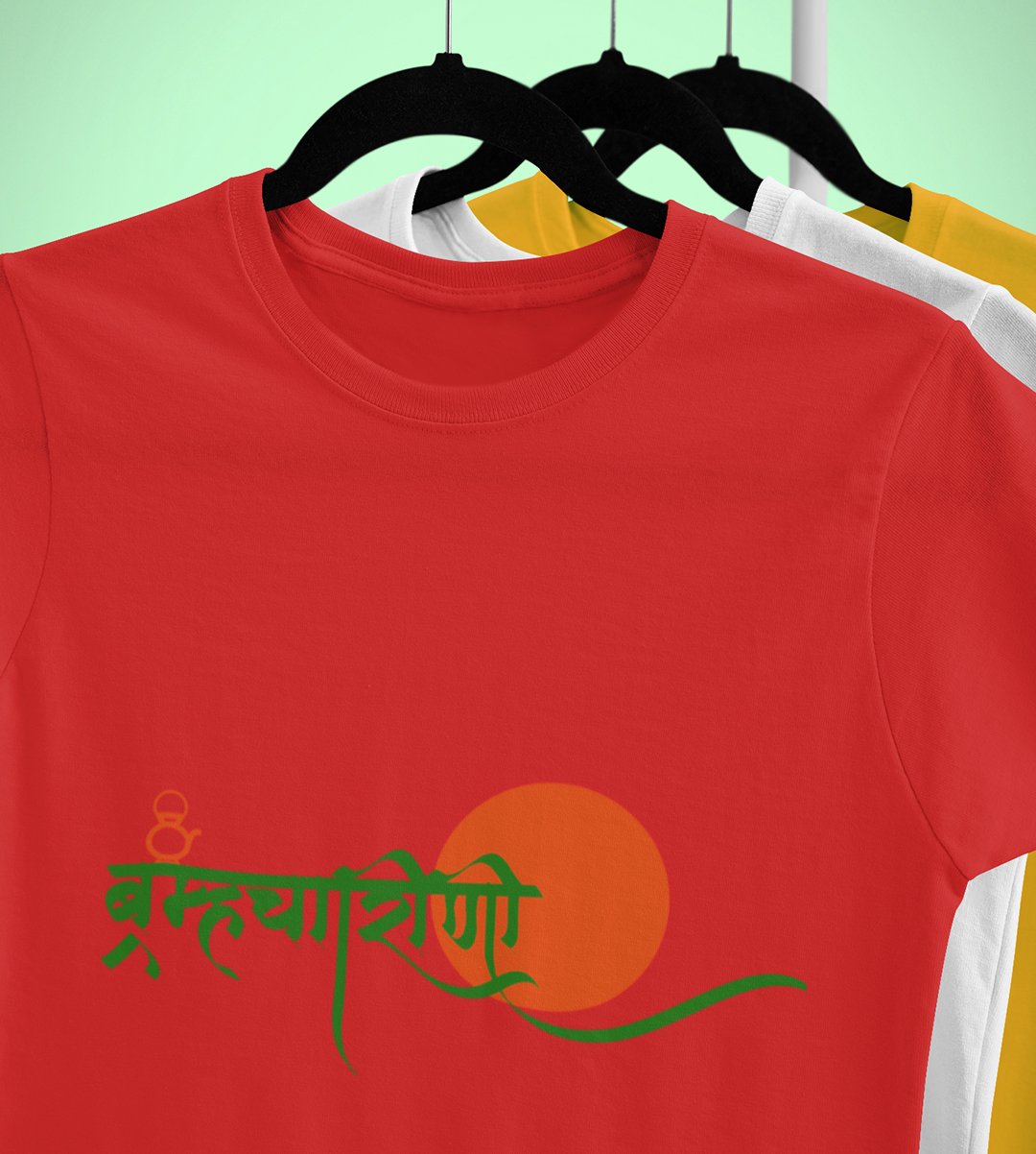 Bhahmacharini printed unisex adults round neck cotton half-sleeve red tshirt specially for Navratri festival/ Durga puja
