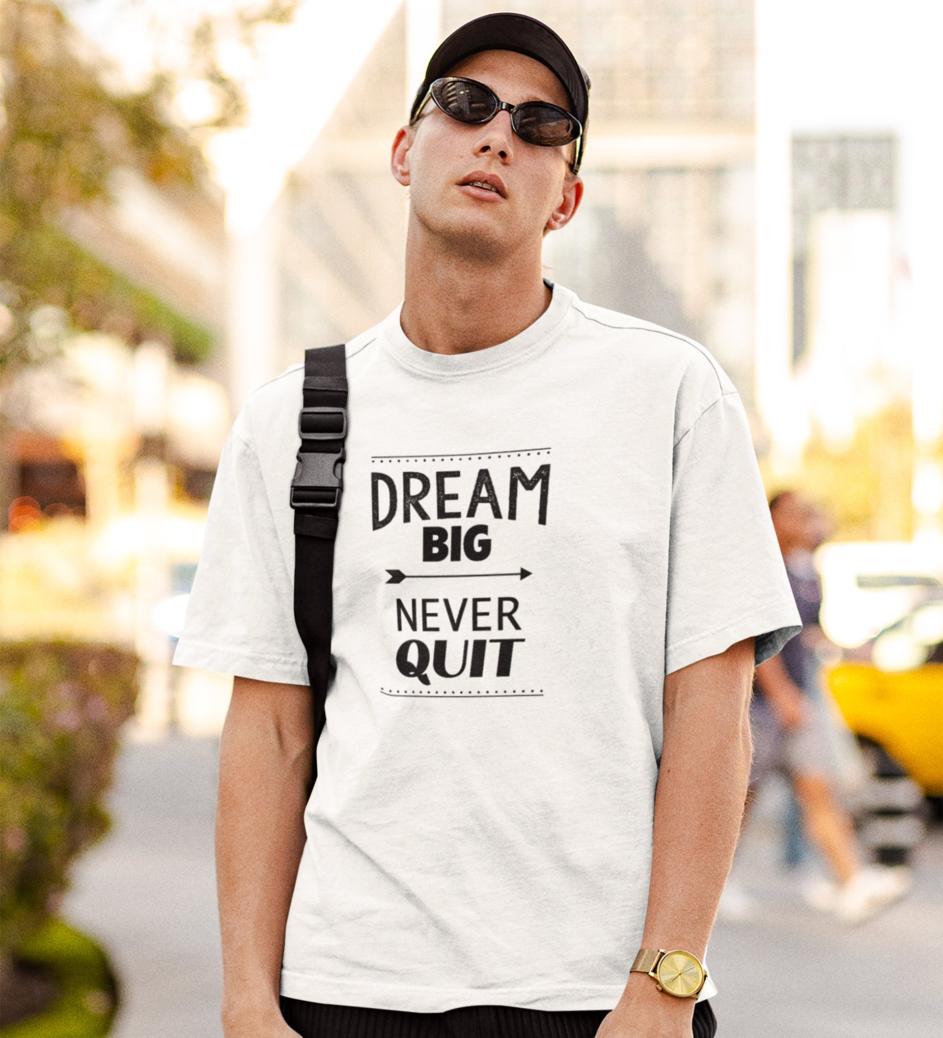 Never Quit White Round Neck Cotton Half Sleeved Men's T-Shirt with Printed Graphics
