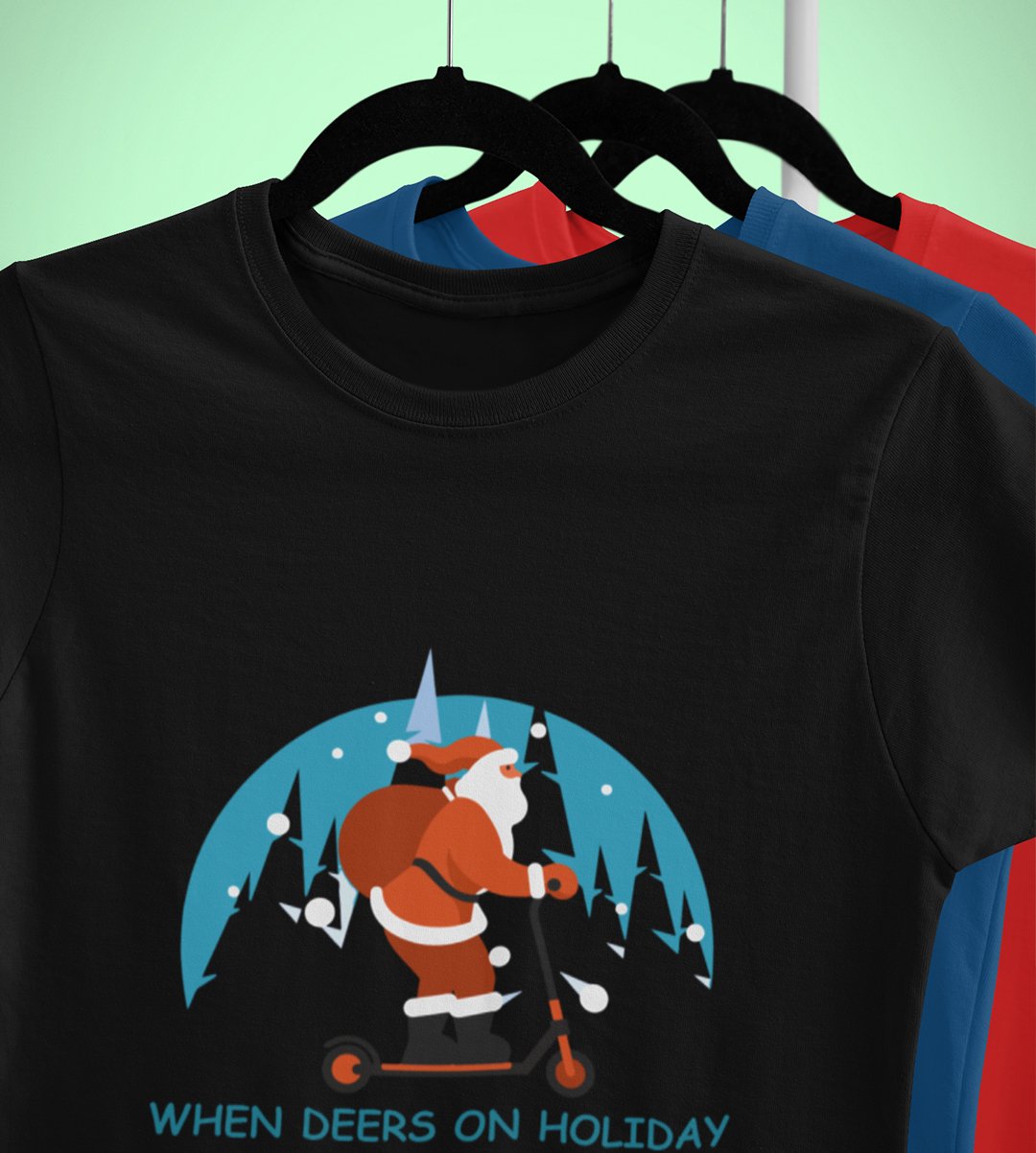 Biker Santa: Unique Printed T-shirt (Black) Perfect Gift For Christmas Boys Girls