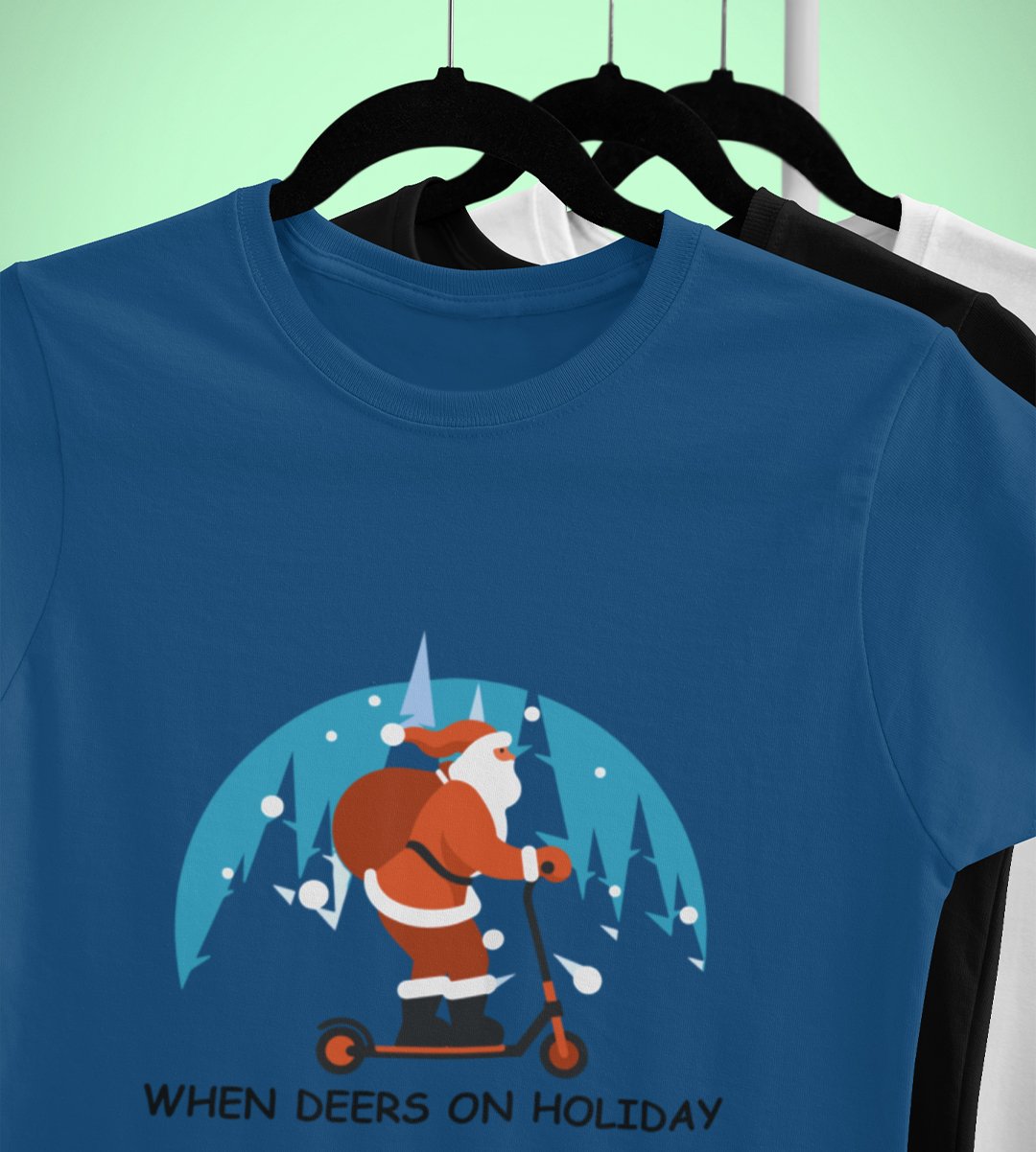 Biker Santa: Unique Printed T-shirt (Blue) Perfect Gift For Christmas Boys Girls