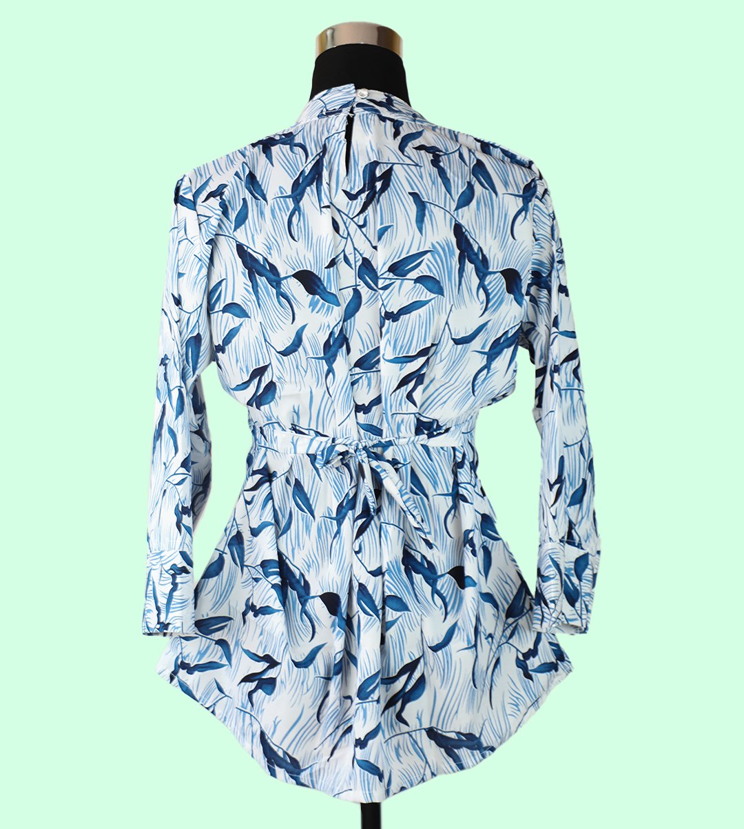 Blue Blooms: Women's Top with Dark Blue Floral Print