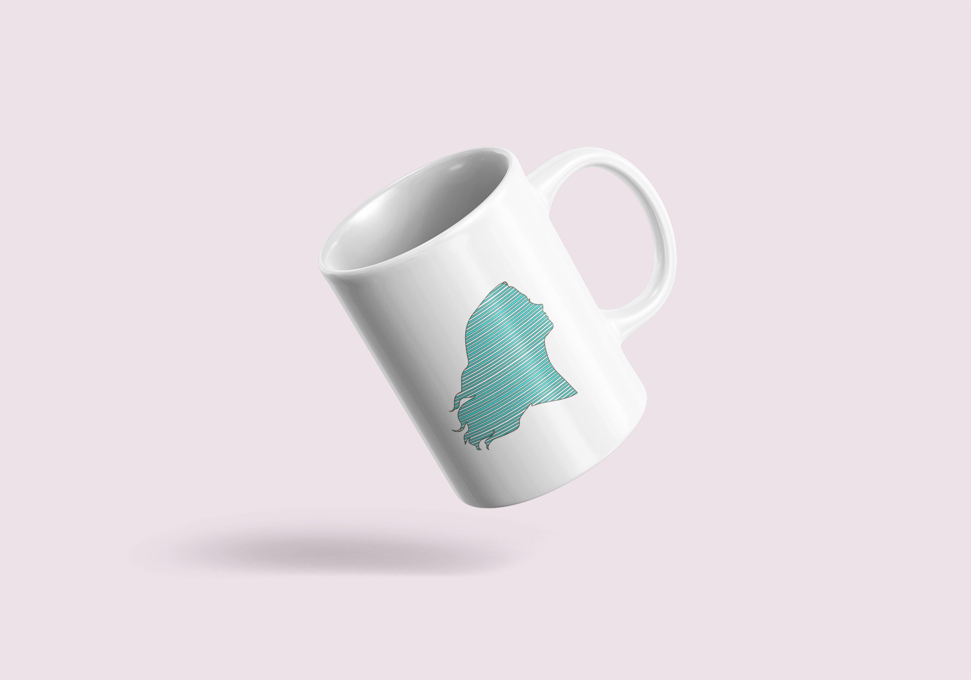Blue Lady - line art themed printed ceramic white coffee and tea mugs/ cups