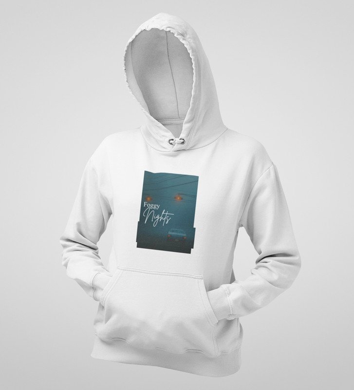 Blur Nights,White Street Symphony: Front Printed Men's Oversized Hoodie - Urban Elegance