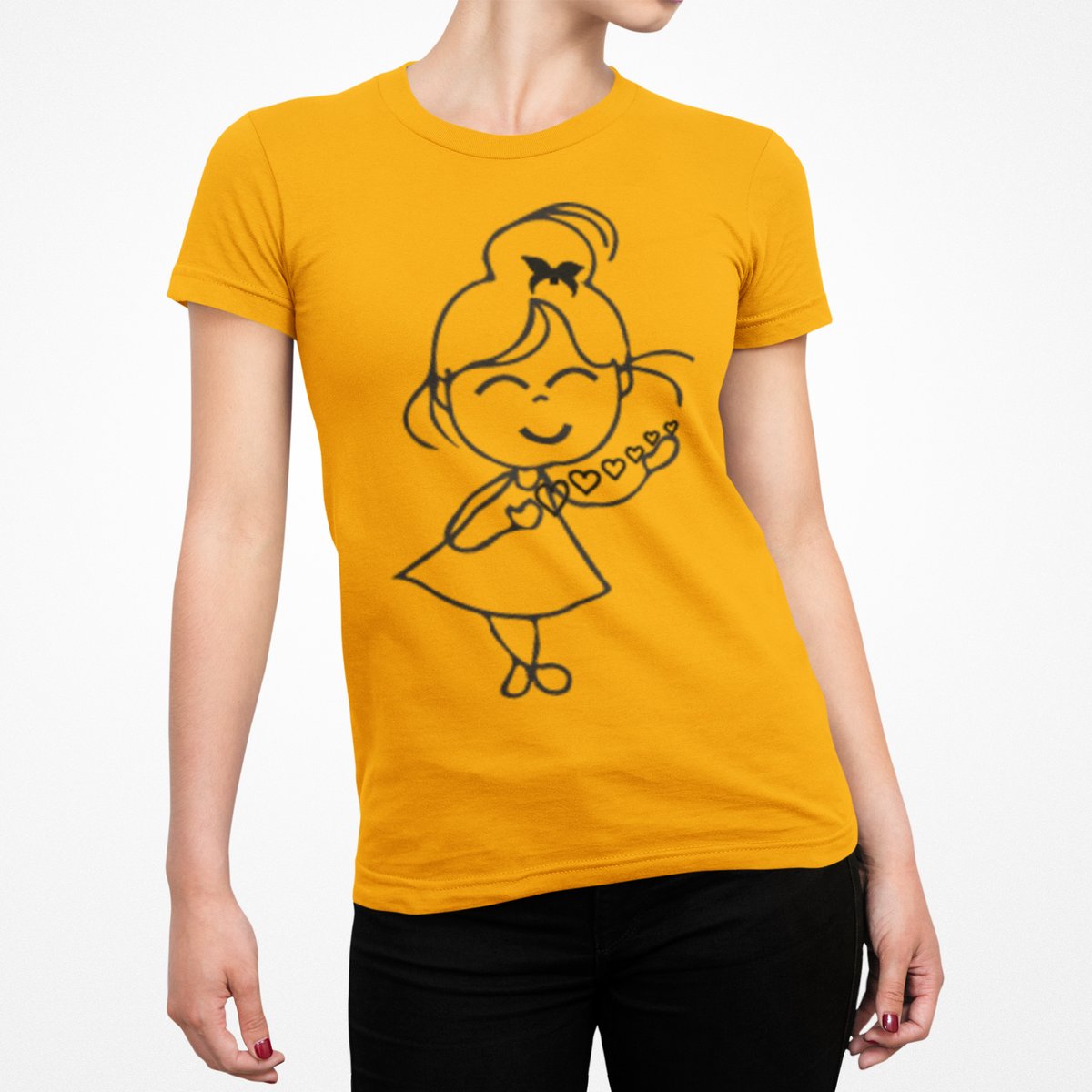 Blushing Girl - Line Art for Female - Half Sleeves T-shirt