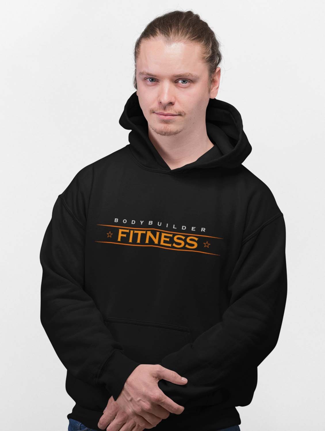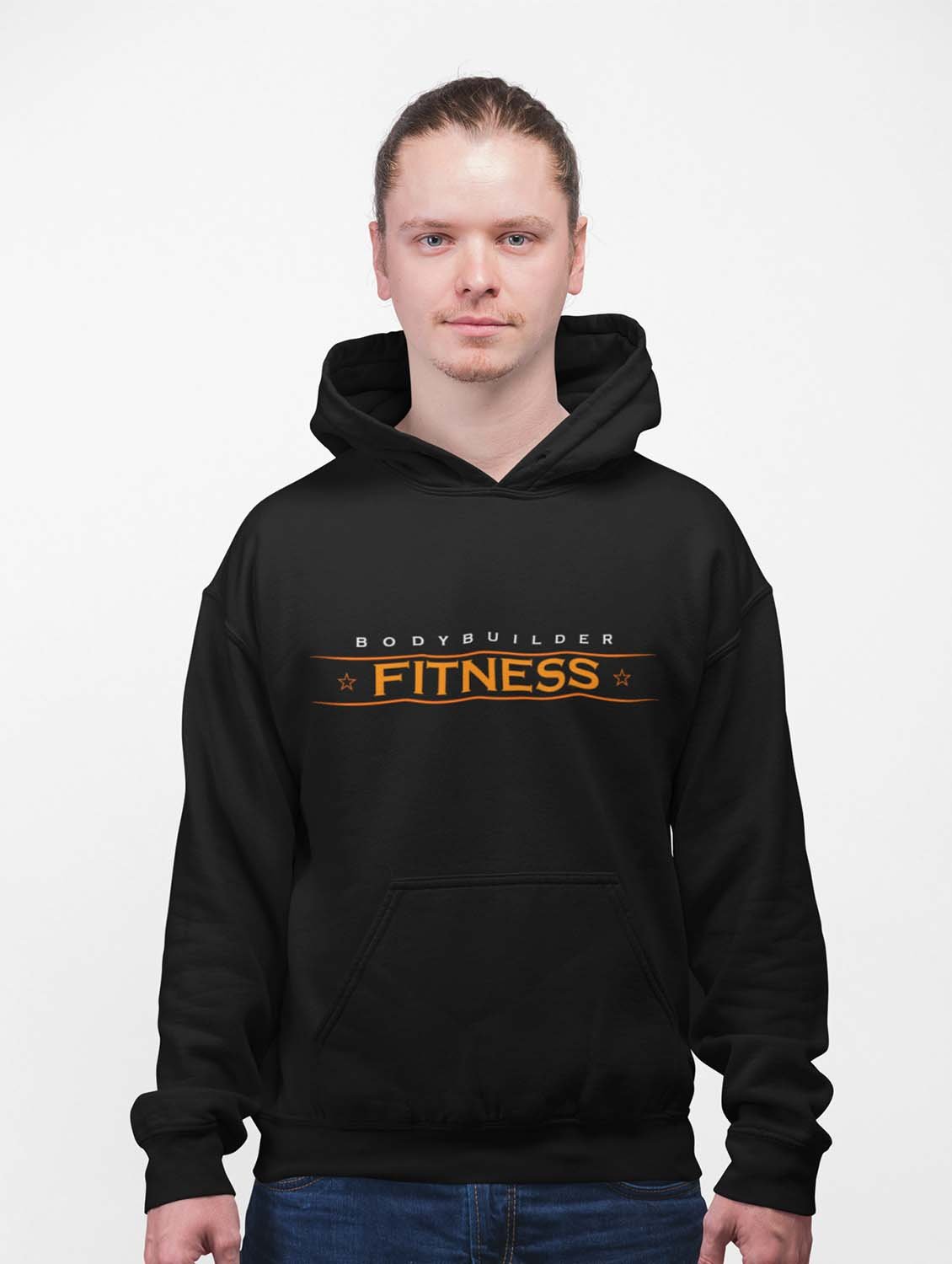 Bodybuilder, Fitness, (Orange)printed artswear black hoodies for winter casual wear specially for Men