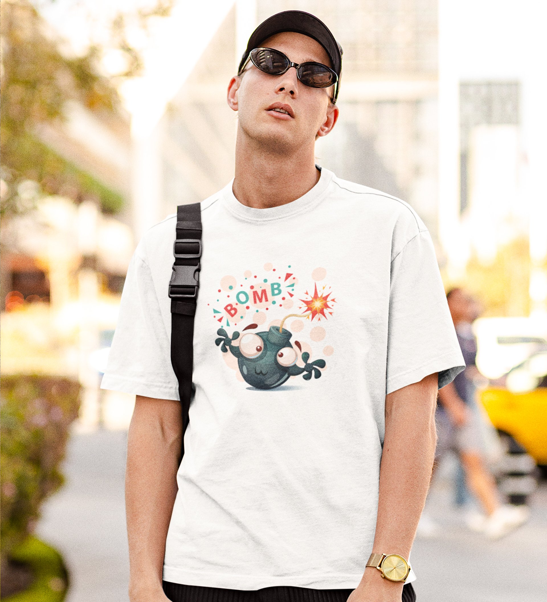 Bomb Illustration Art White Round Neck Cotton Half Sleeved Men's T-Shirt with Printed Graphics