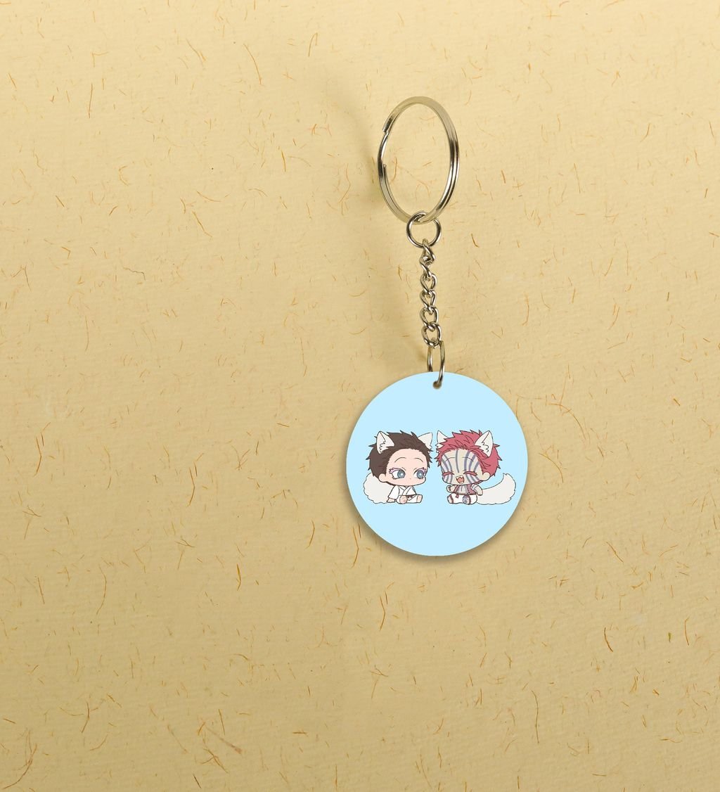 Bonding with Akaza The Demon of Intense Loyalty Anime Printed Round Keychains Pack of 2