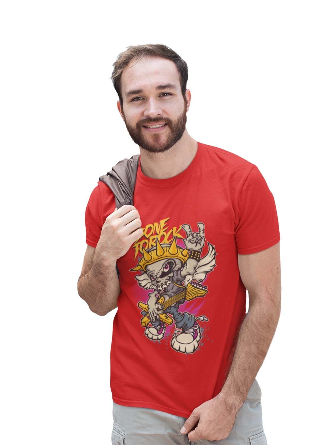 Bone To Rock Red Round Neck Cotton Half Sleeved T-Shirt with Printed Graphics
