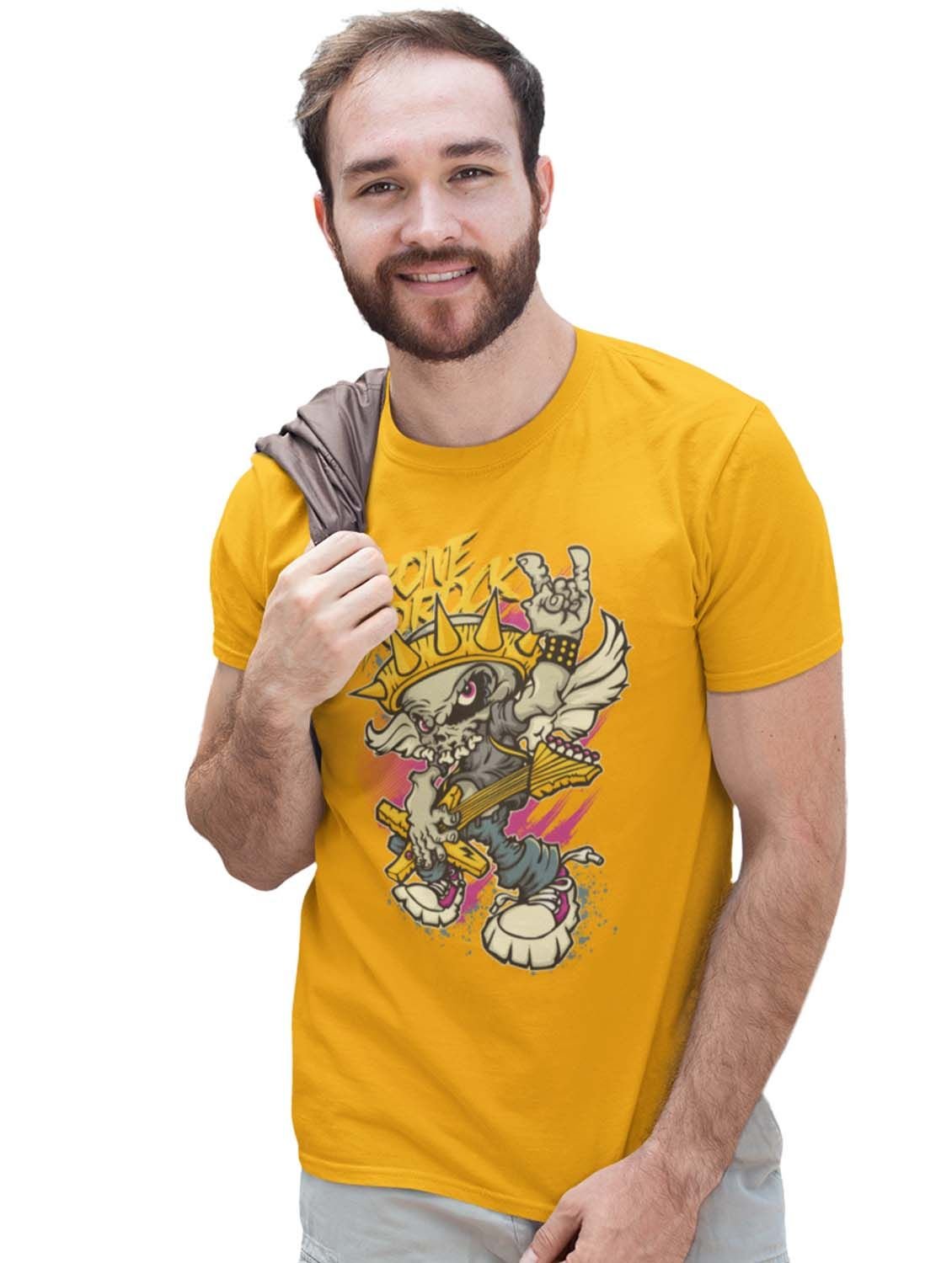 Bone To Rock Yellow Round Neck Cotton Half Sleeved T-Shirt with Printed Graphics