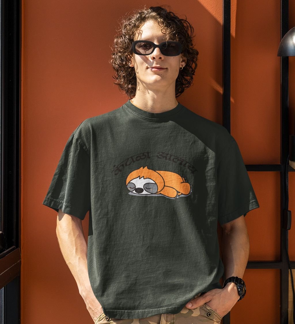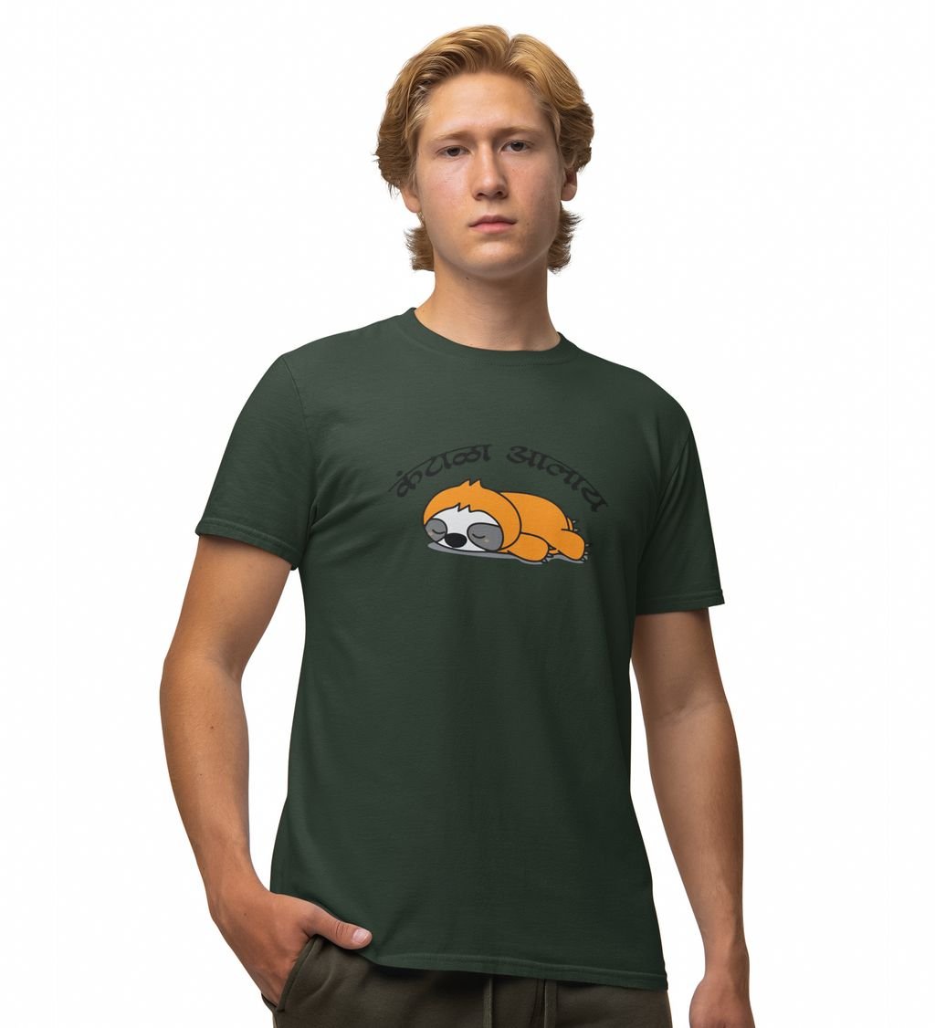 Boredom Green Round Neck Cotton Half Sleeved Men T Shirt with Printed Graphics
