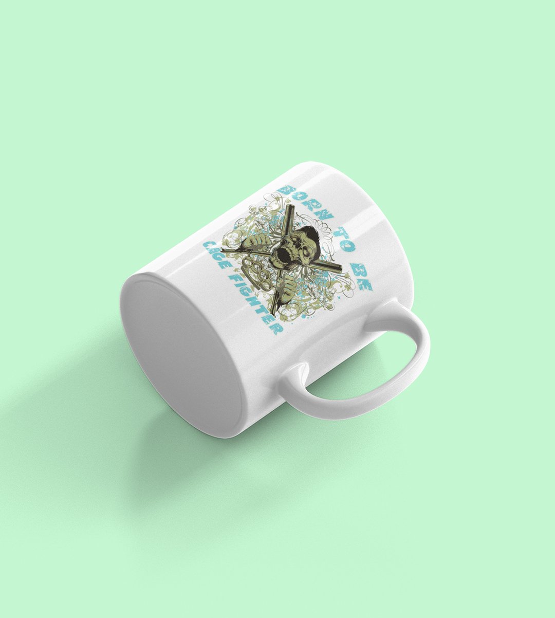 Born to be cage fighter - animation themed printed ceramic white coffee and tea mugs/ cups for animation lovers