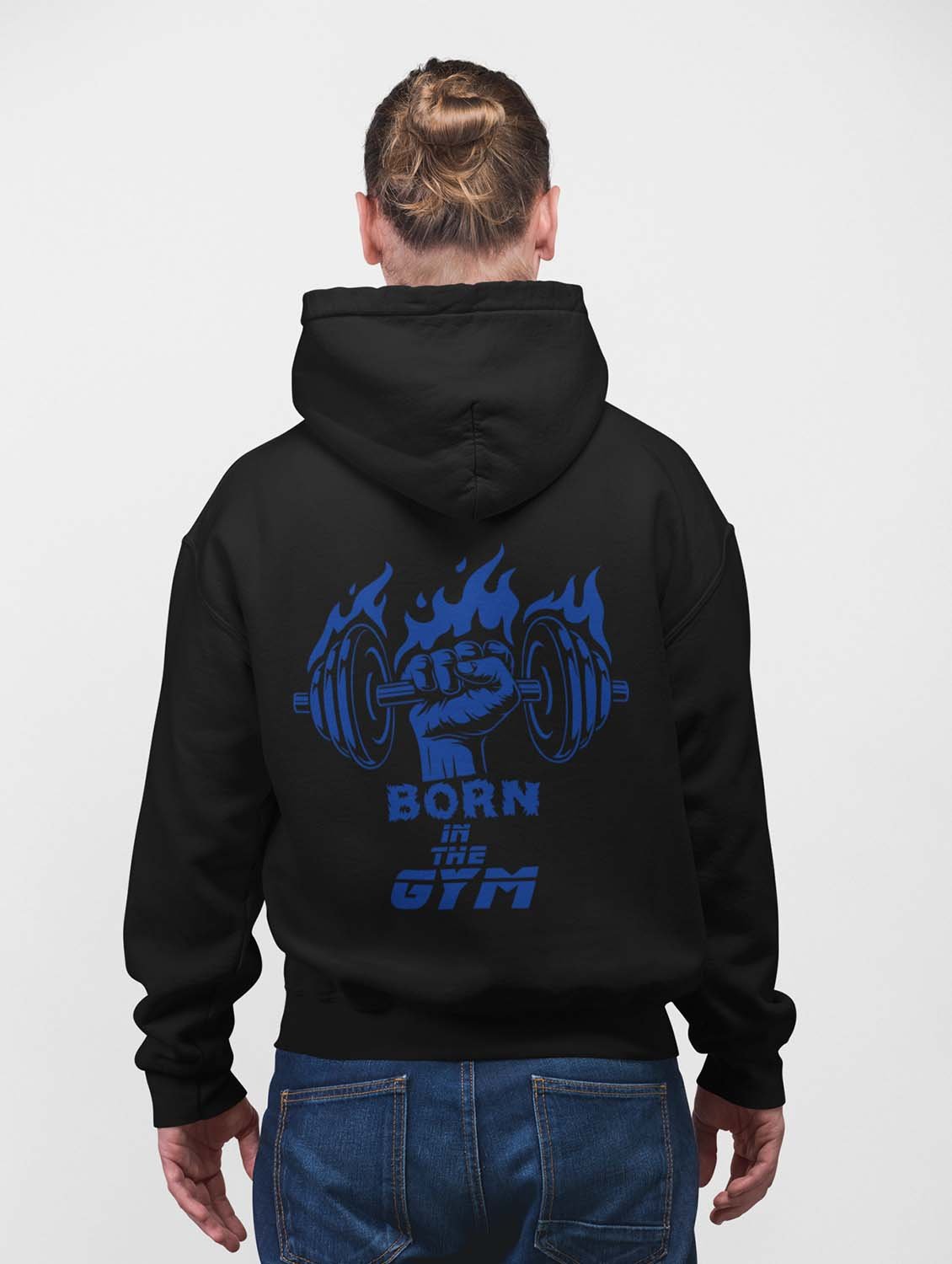 Born To The Gym, (BG Blue) printed artswear black hoodies for winter casual wear specially for Men