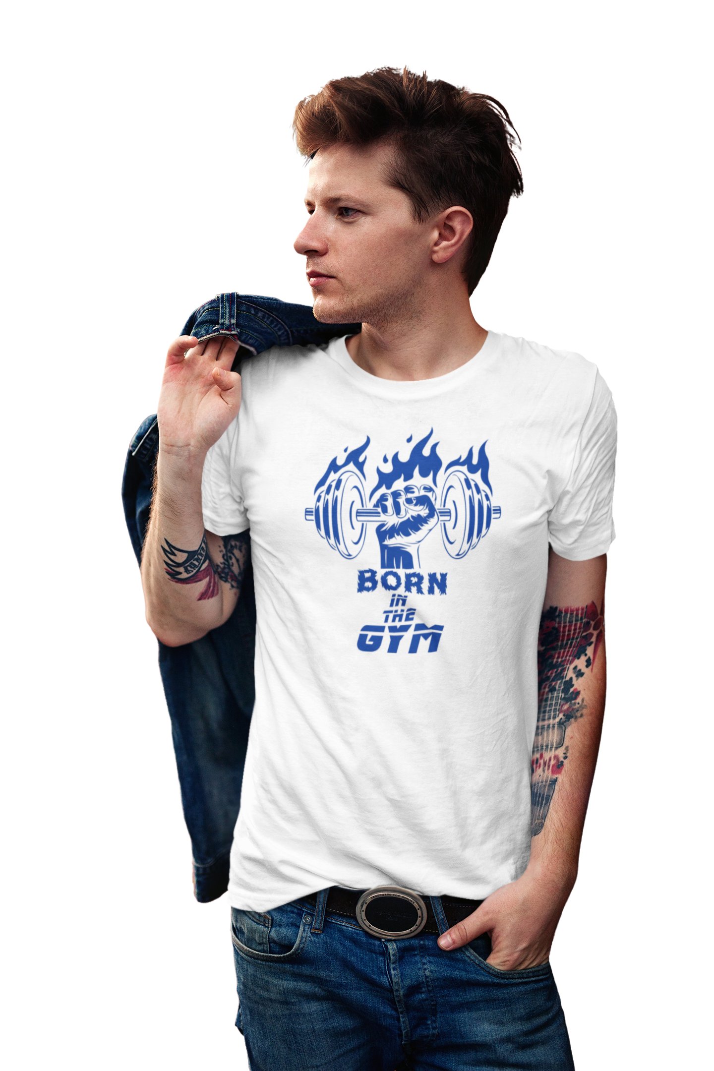 Born To The Gym, Round Neck Gym Tshirt (White Tshirt) - Clothes for Gym Lovers - Suitable for Gym Going Person - Foremost Gifting Material for Your Friends and Close Ones