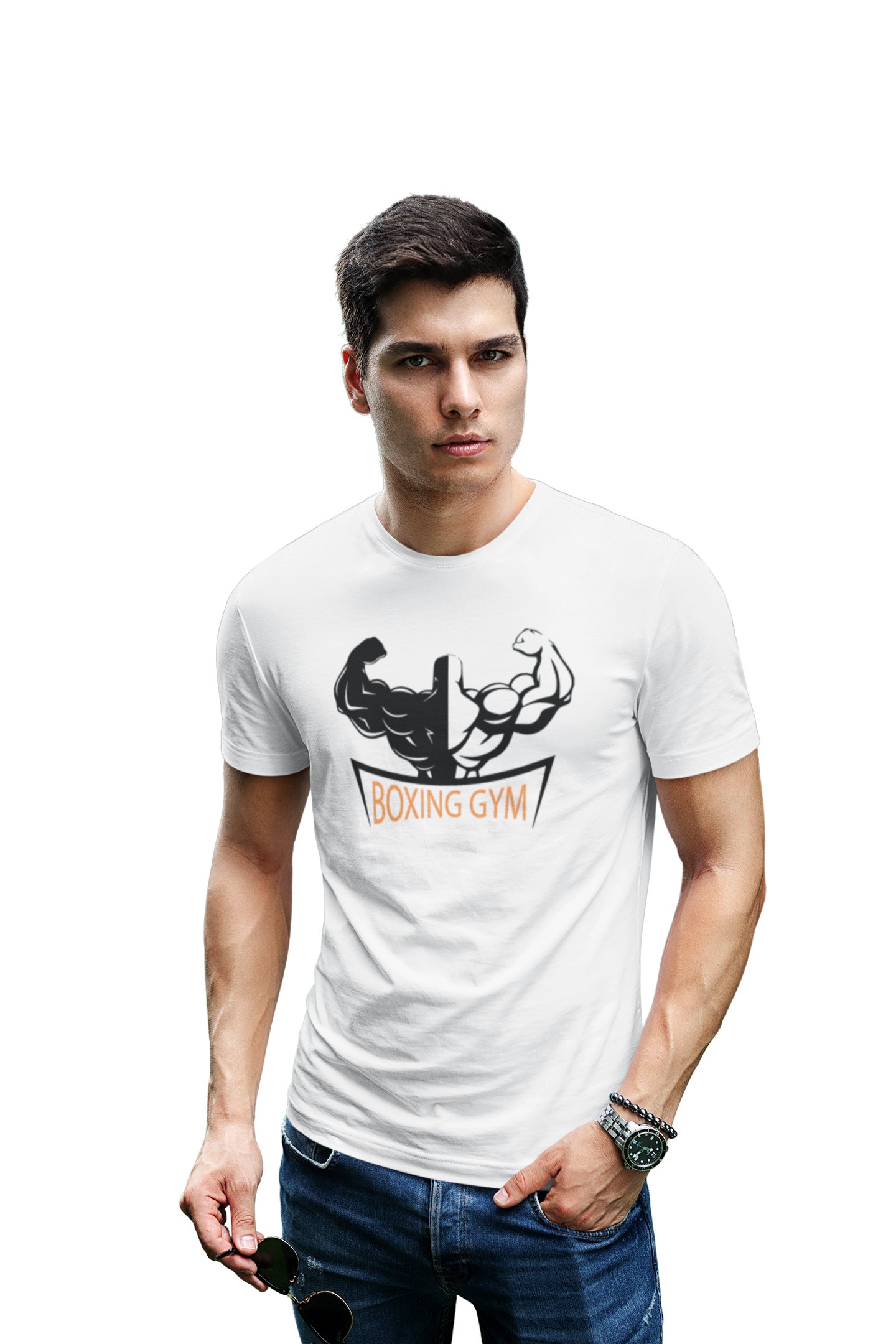 Boxing Gym, Round Neck Gym Tshirt (White Tshirt) - Clothes for Gym Lovers - Foremost Gifting Material for Your Friends and Close Ones