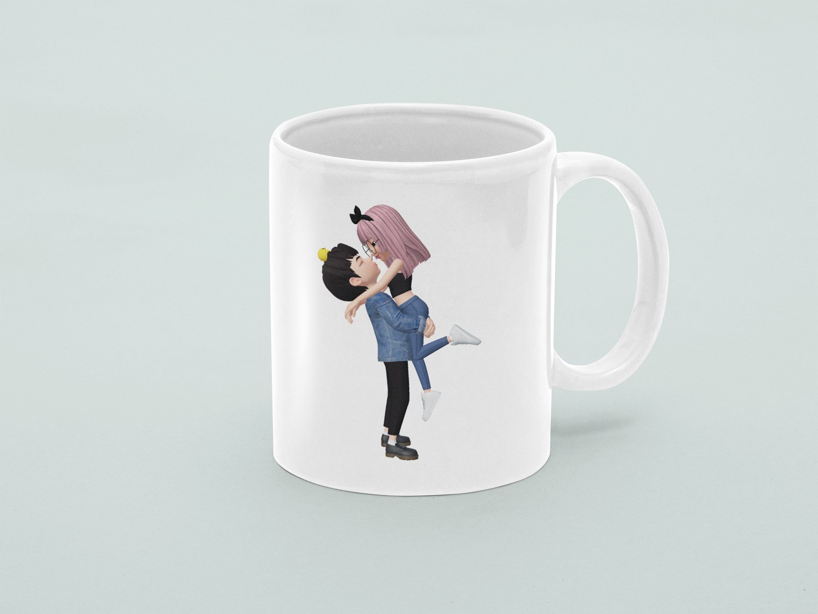 Boy lifting girl - valentine themed printed ceramic white coffee and tea mugs/ cups