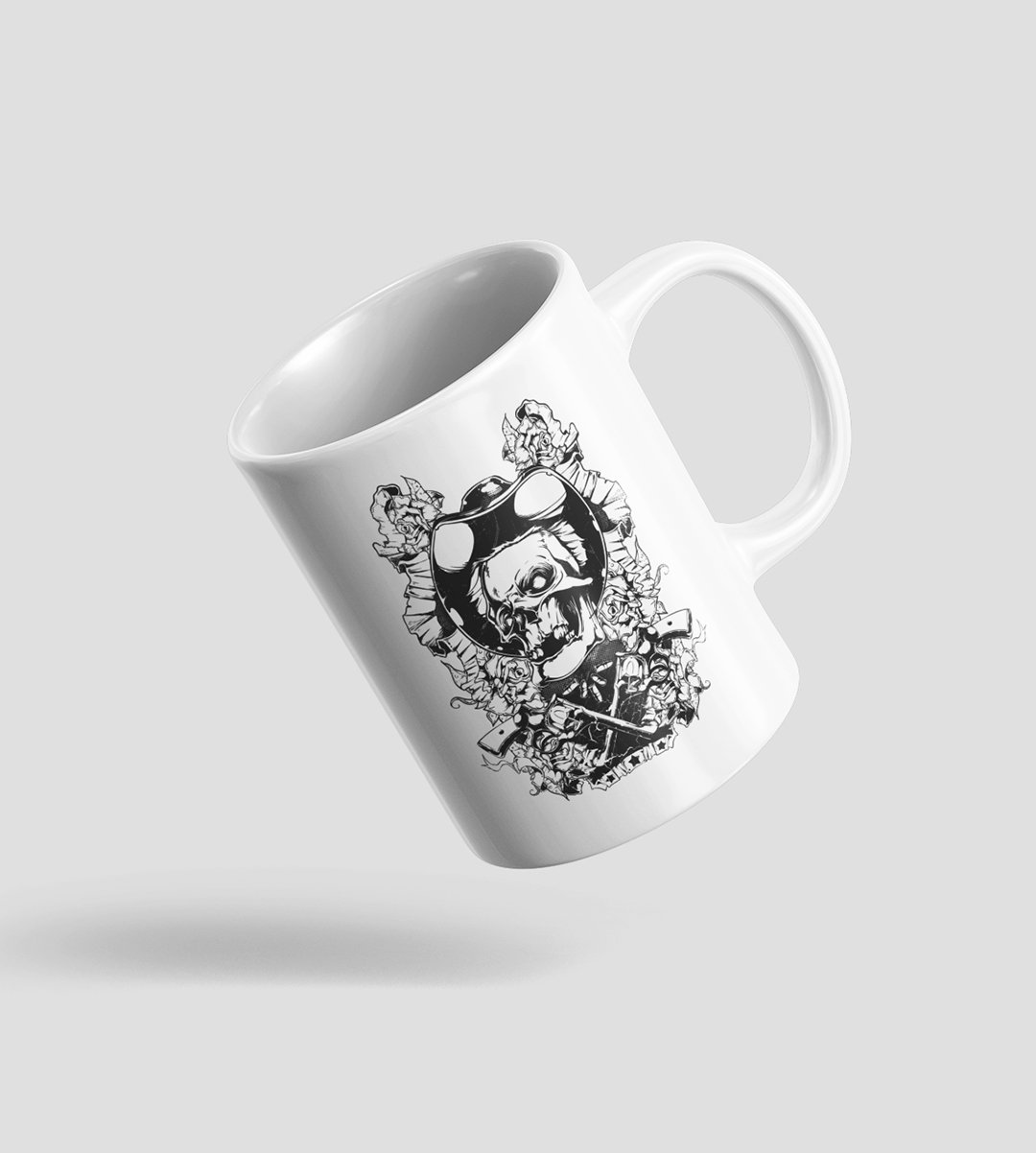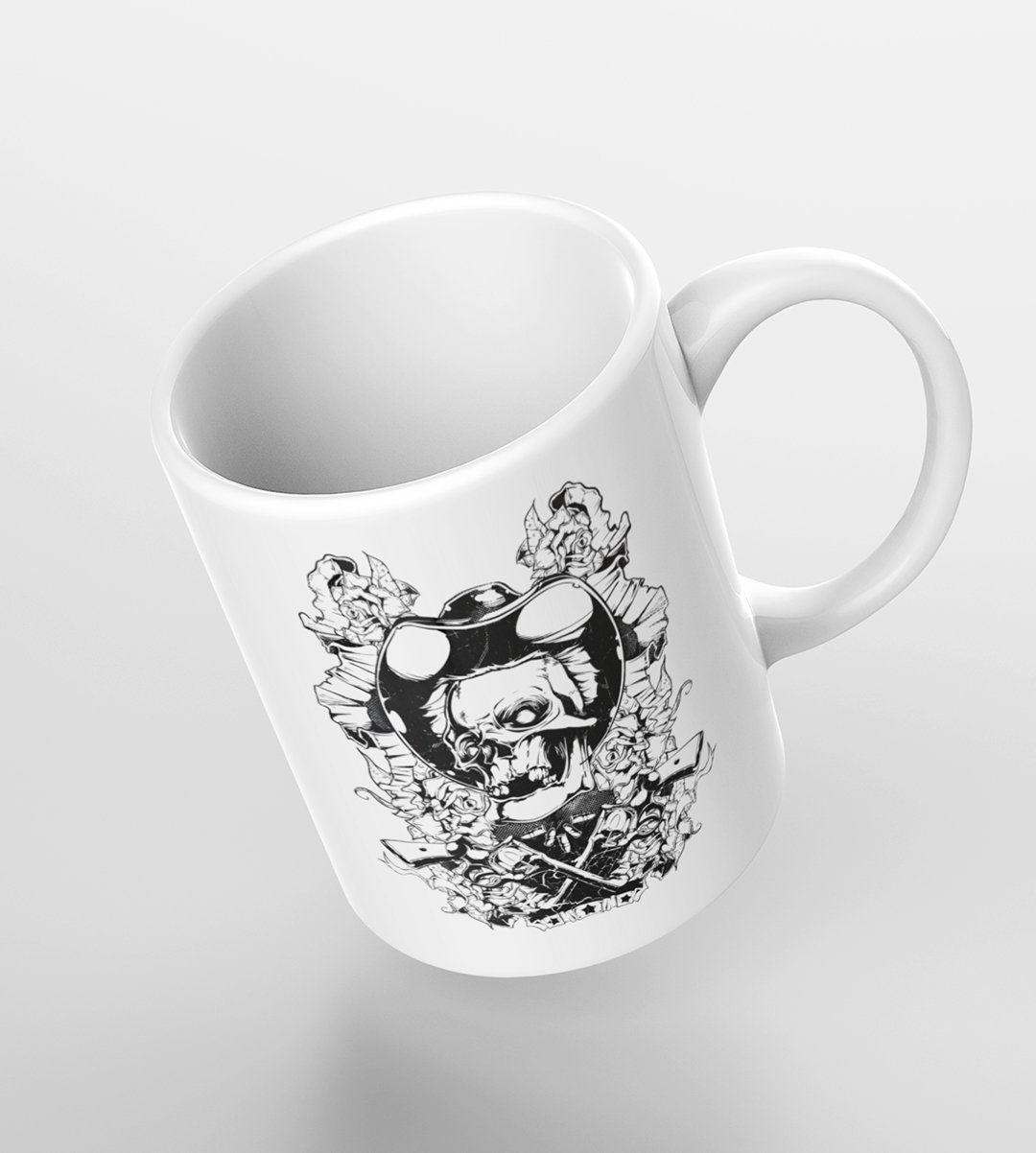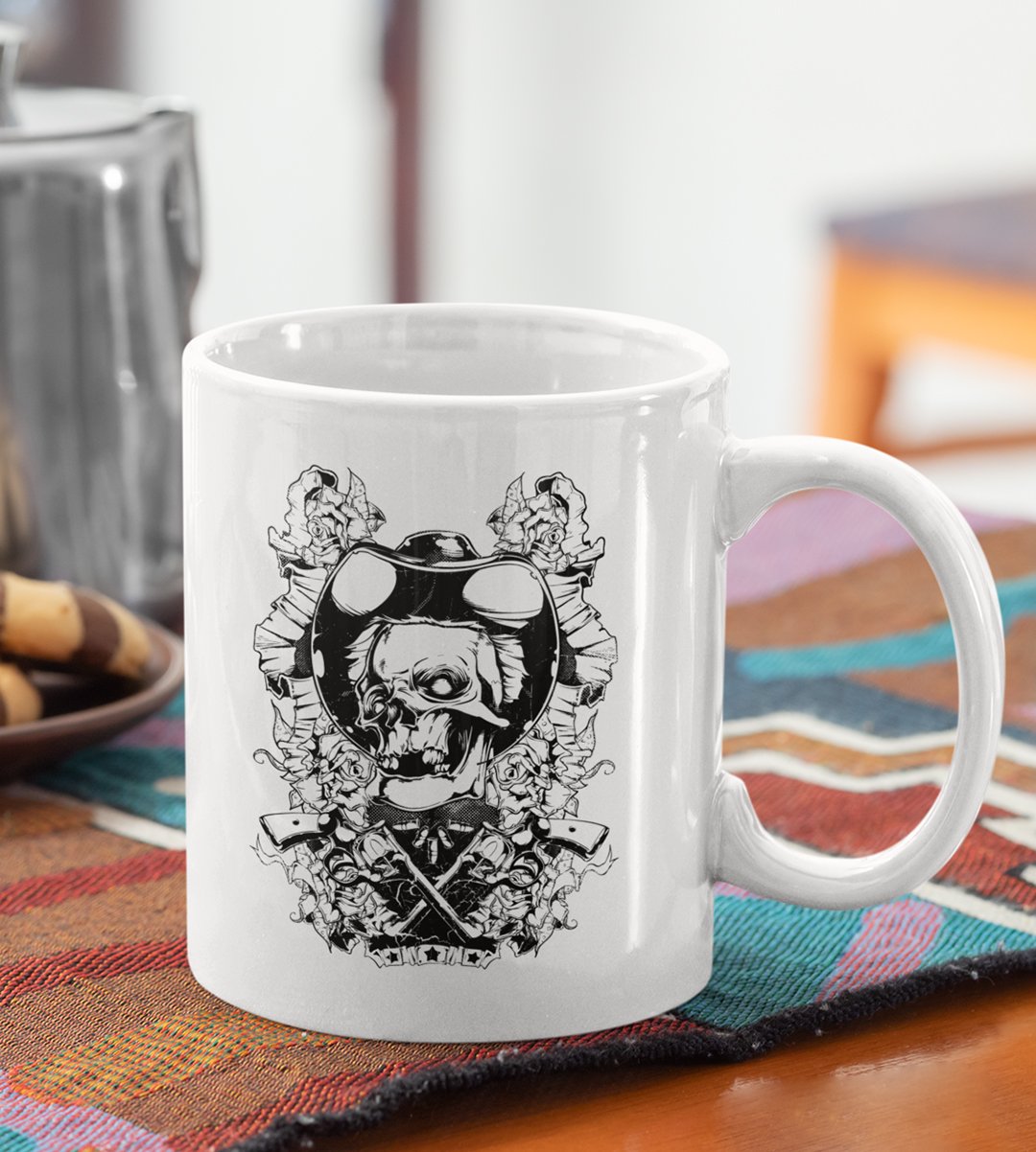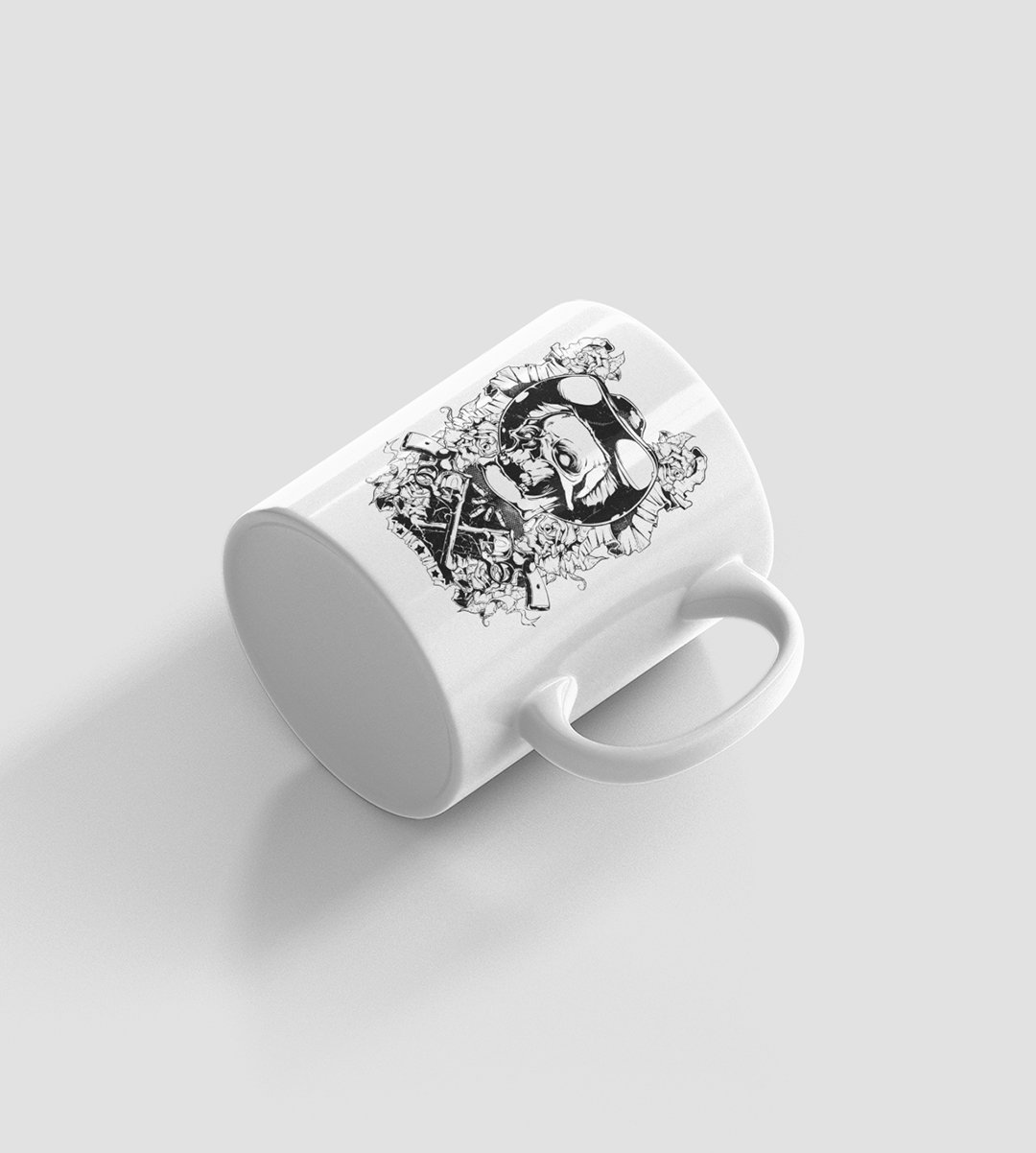 Broken teeth skull (black) - animation themed printed ceramic white coffee and tea mugs/ cups for animation lovers