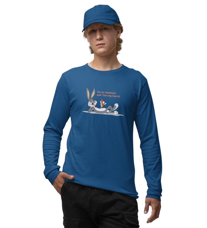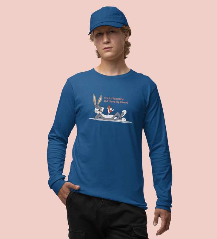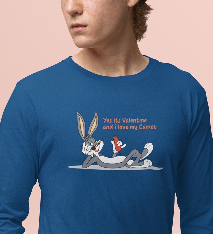 Bunny Loves carrot: (blue) Full Sleeve T-Shirt For Singles
