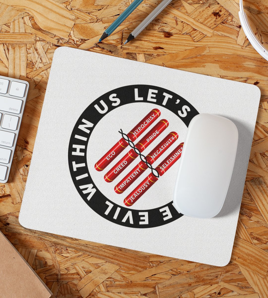 Inspire positivity and change in your workspace with our Burn the Evil Within Us Mouse Pad. It carries a profound message of self-improvement.