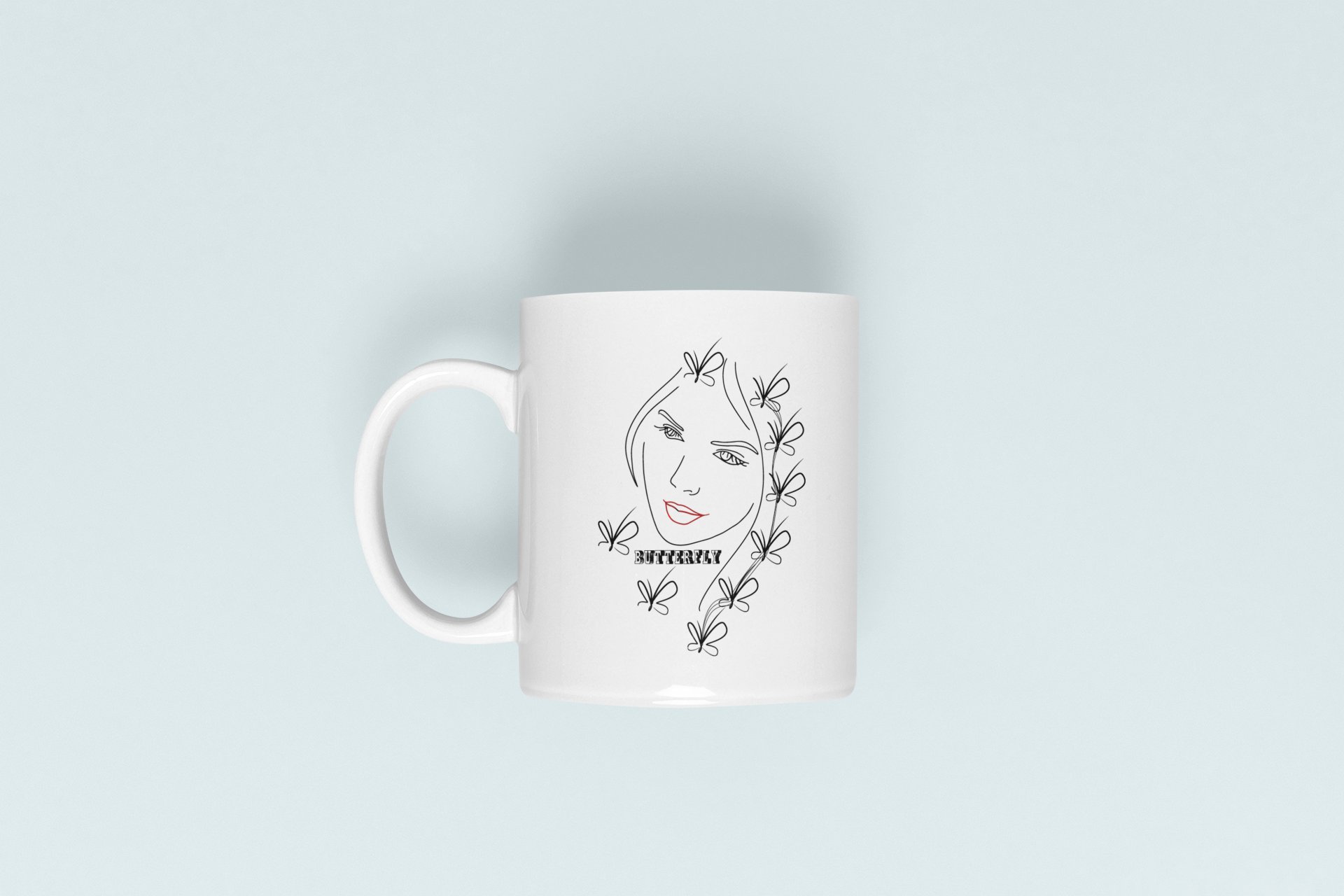 Butterfly- line art themed printed ceramic white coffee and tea mugs/ cups