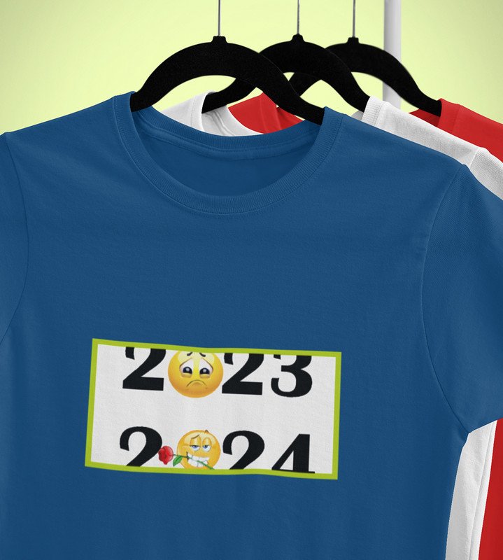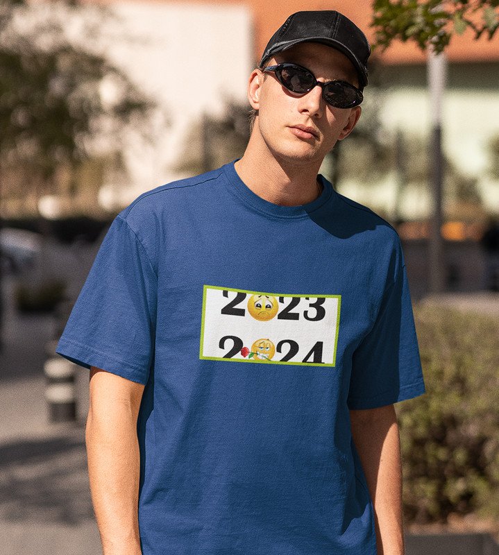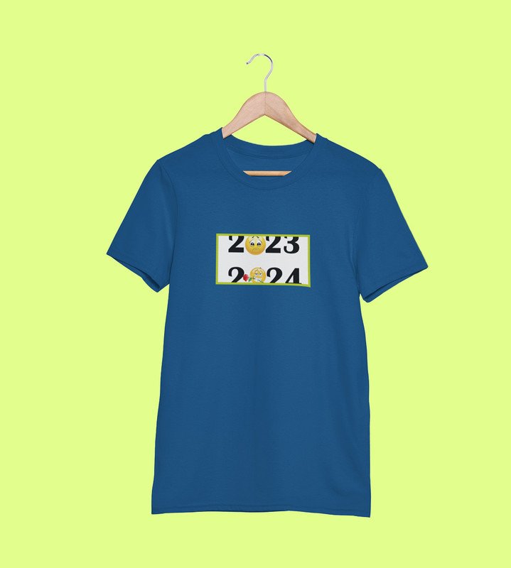 Bye 2023 Welcome 2024 Blue New Year Printed T-shirt For Mens