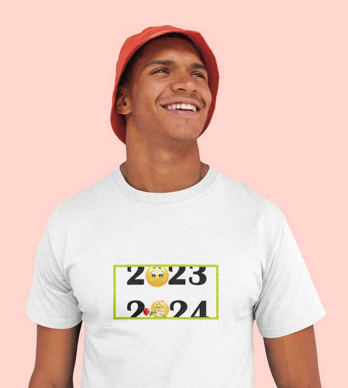 Bye 2023 Welcome 2024 White New Year Printed T-shirt For Mens