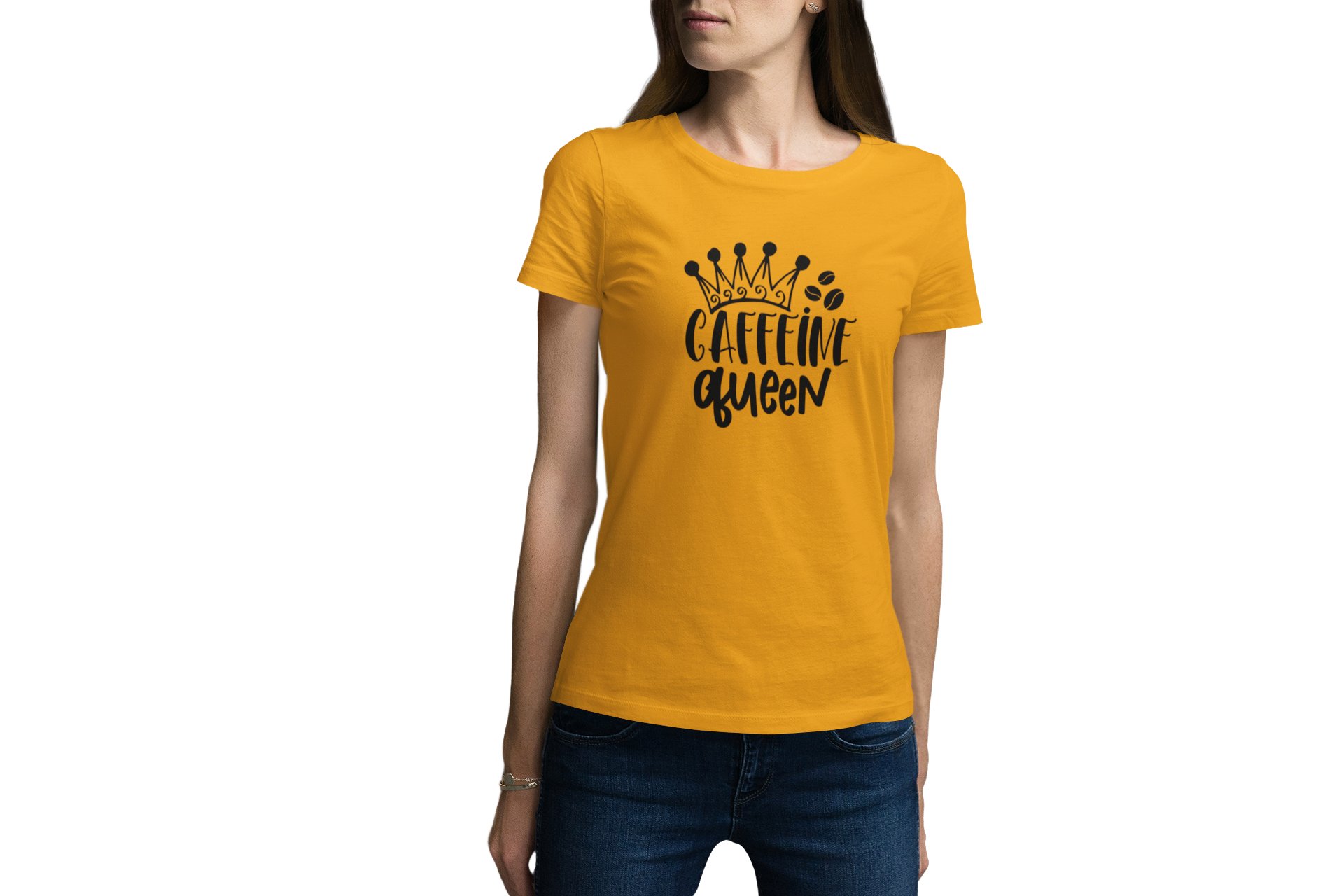 Caffine queen - Yellow - printed t shirt - comfortable round neck cotton.