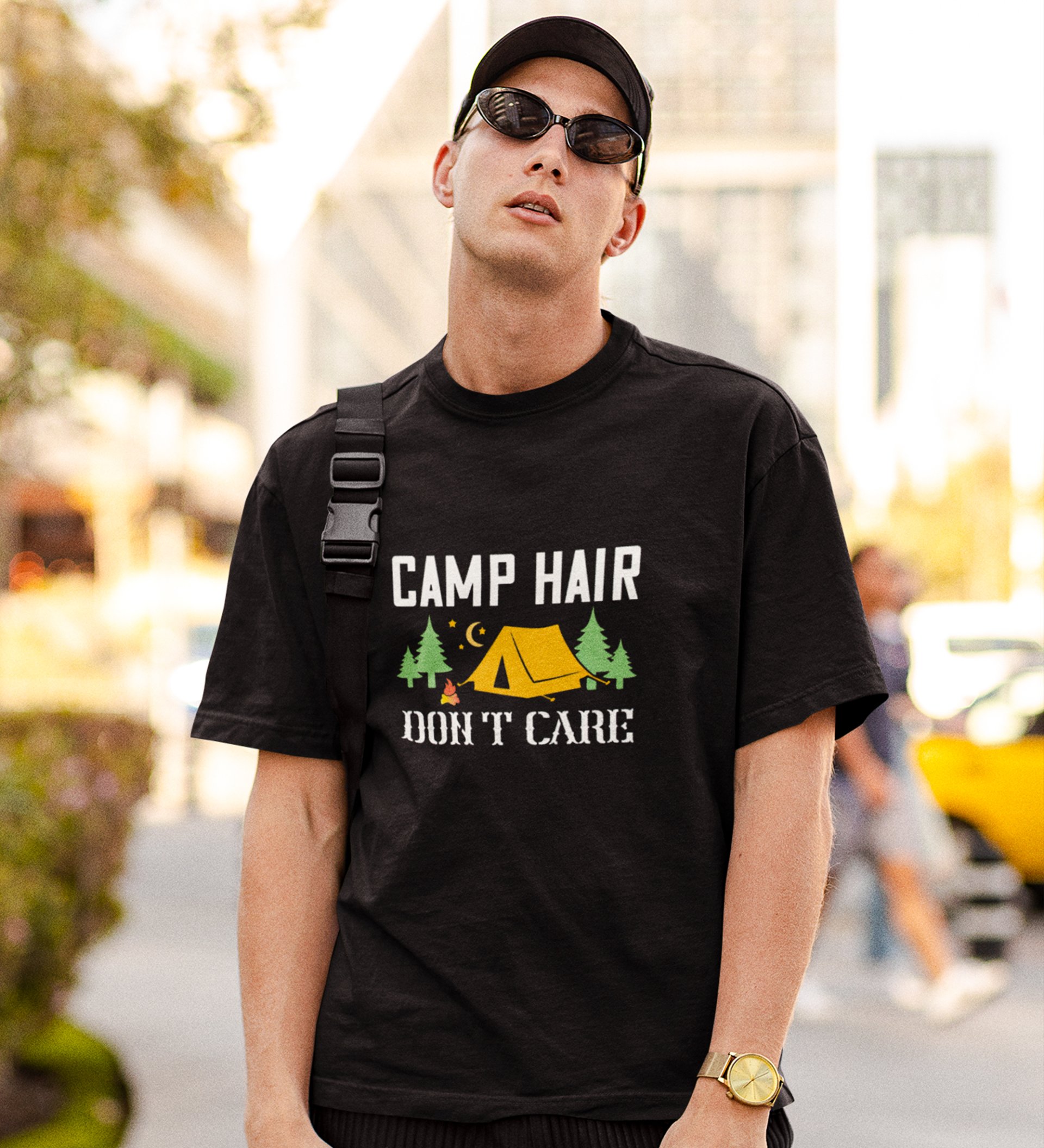 JD.TRENDS Camp Hair Black Round Neck Cotton Half Sleeved Men's T-Shirt with Printed Graphics