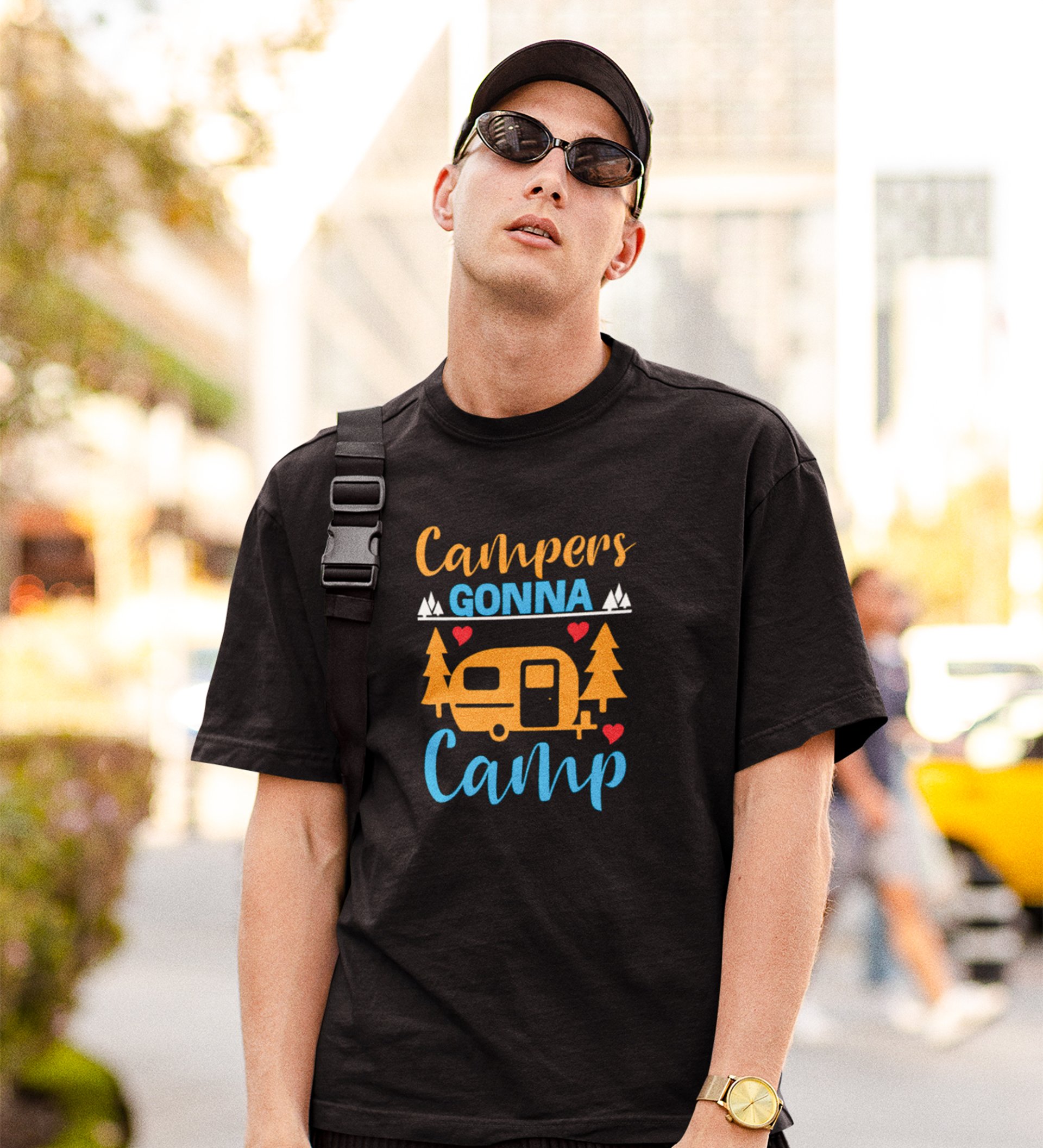 JD.TRENDS Camping In Blood Black Round Neck Cotton Half Sleeved Men's T-Shirt with Printed Graphics