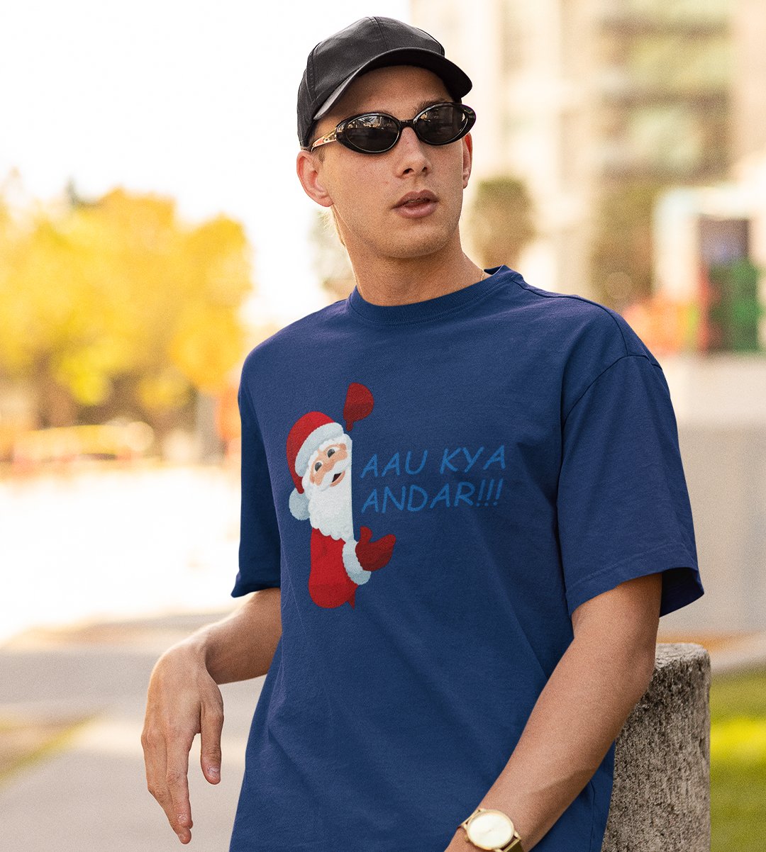 Can I Come Inside: Best Printed T-shirt (Blue) Amazing Gift For Secret Santa