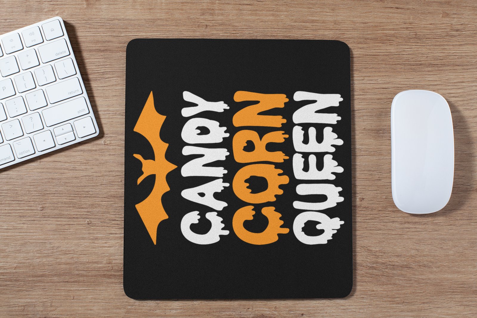 Candy Corn Queen Creepy Text, Bat-Halloween Theme Mousepad