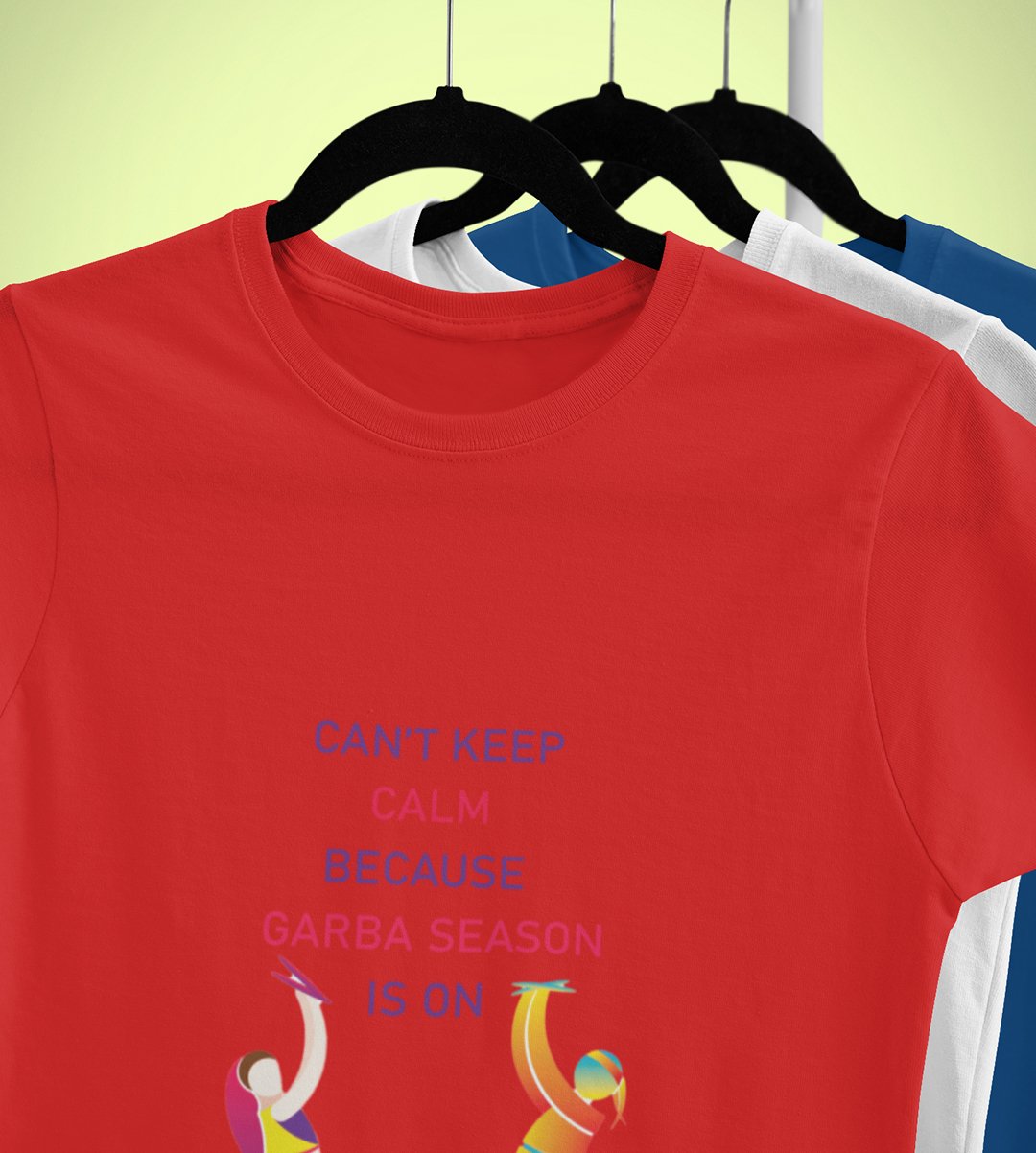 Can't keep calm printed unisex adults round neck cotton half-sleeve red tshirt specially for Navratri festival/ Durga puja