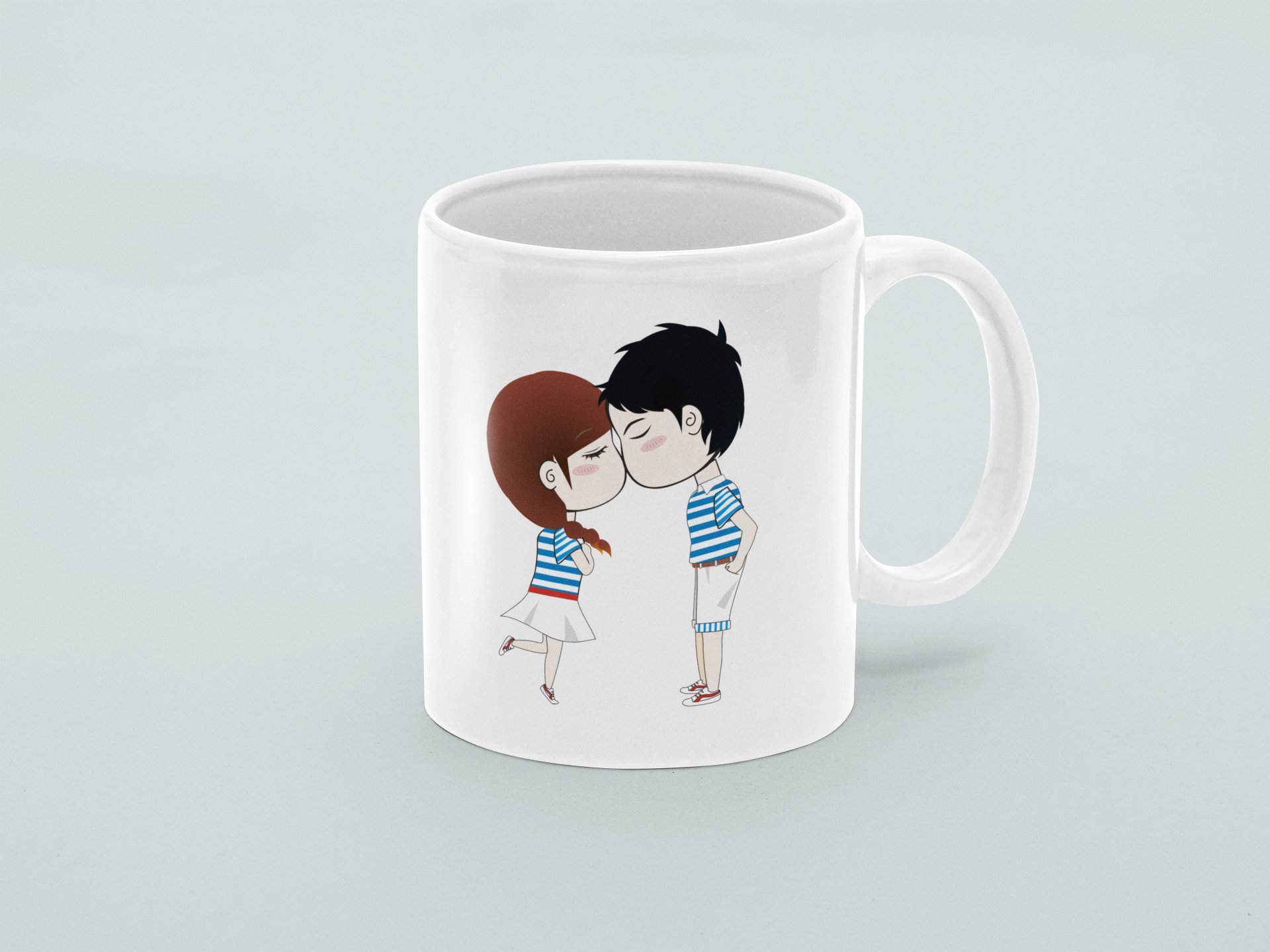 Cartoon character copule - valentine themed printed ceramic white coffee and tea mugs/ cups