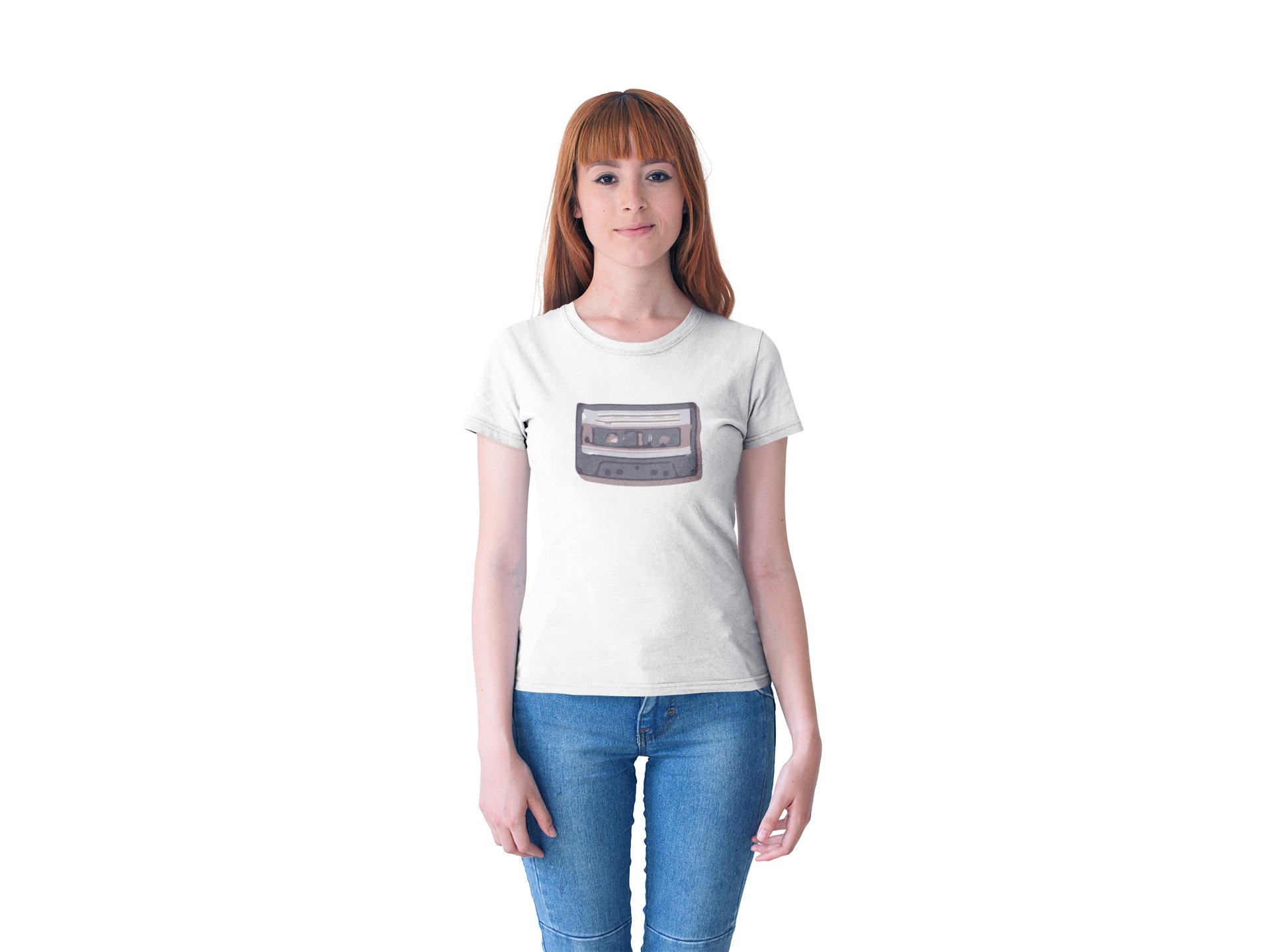 Cassette- musted White - Women's printed T-shirt - comfortable round neck Cotton