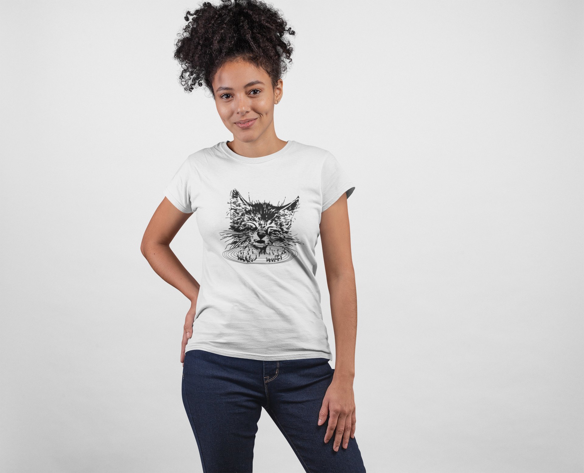 Cat - Line Art for Female - Half Sleeves T-shirt