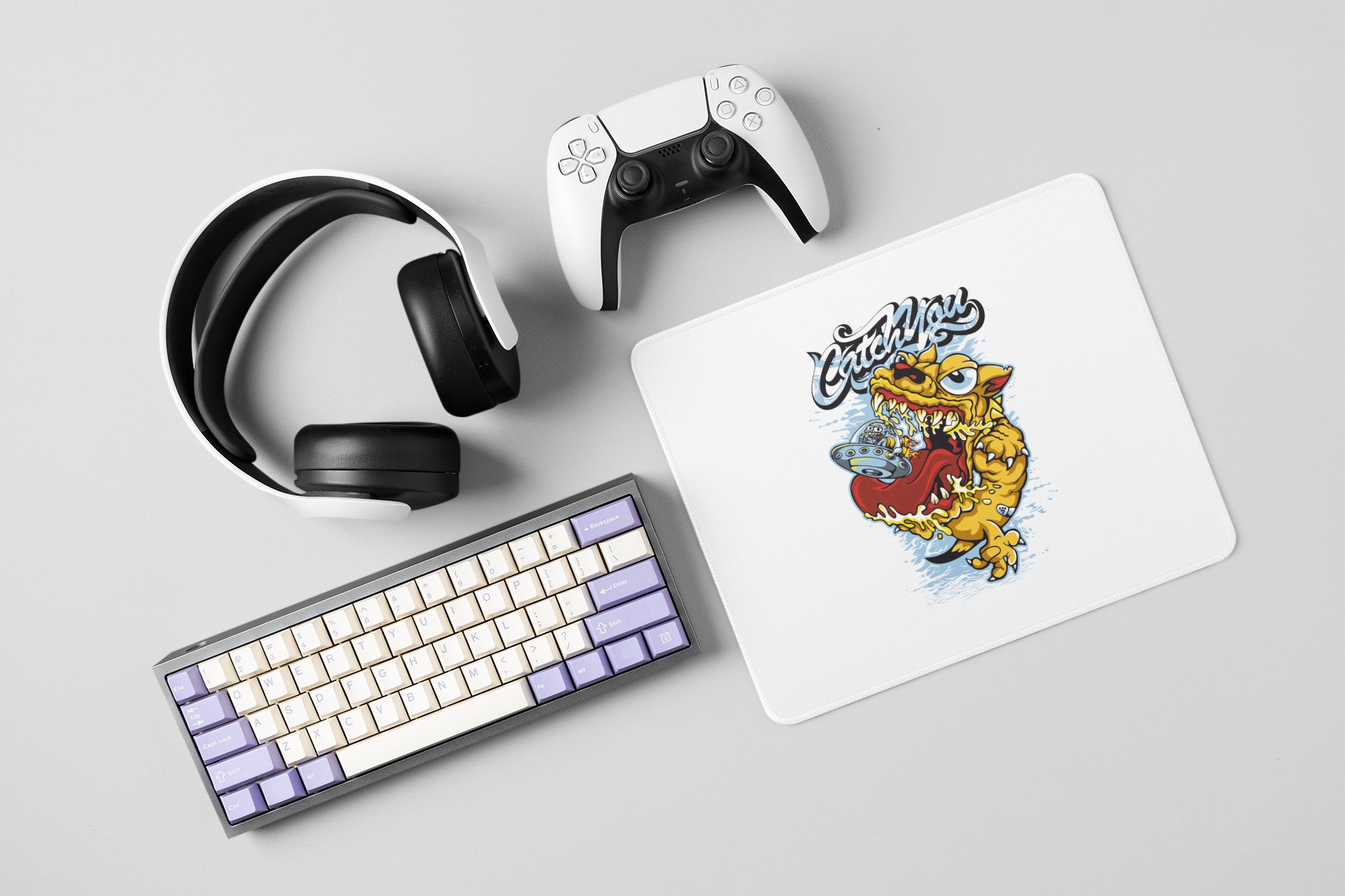 Catch You, Dog Swallowing UFO - Printed Animated Mousepads