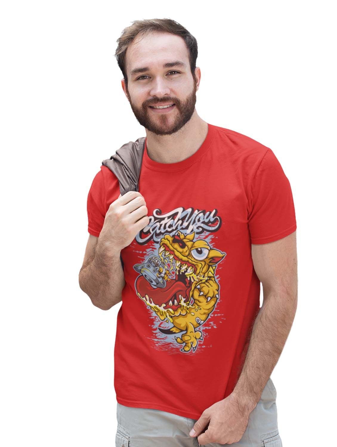 Hungry Dog Red Round Neck Cotton Half Sleeved T-Shirt with Printed Graphics