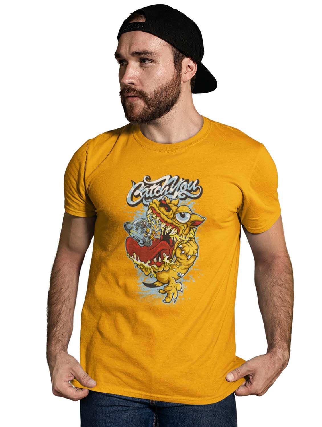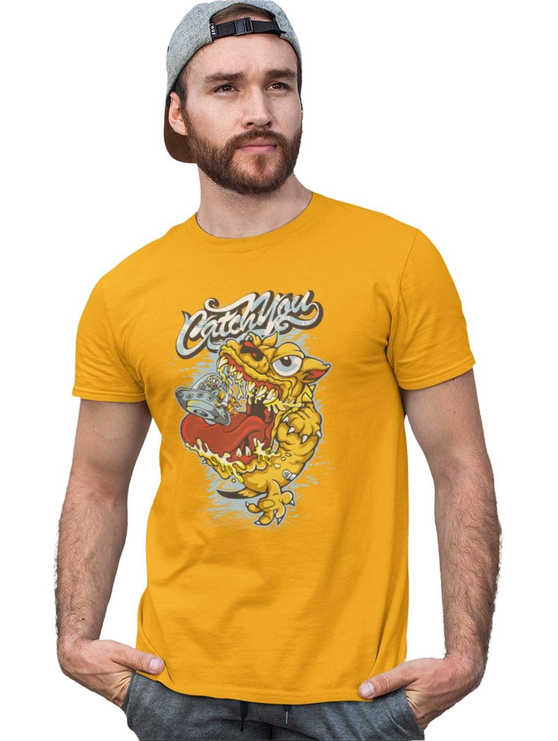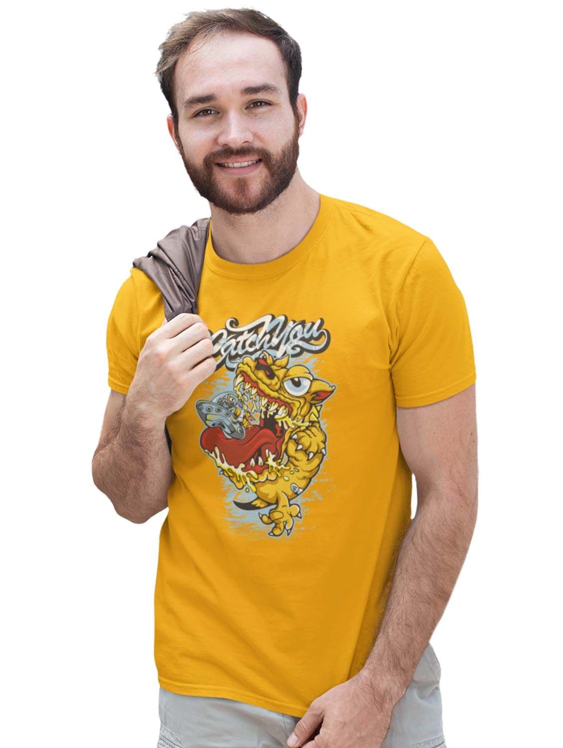 Hungry Dog Yellow Round Neck Cotton Half Sleeved T-Shirt with Printed Graphics