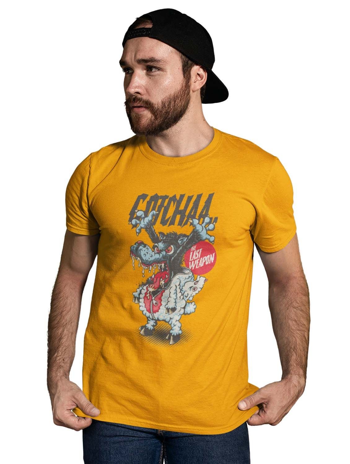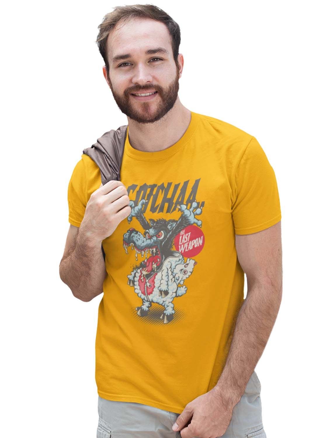 The Last Weapon Yellow Round Neck Cotton Half Sleeved T-Shirt with Printed Graphics